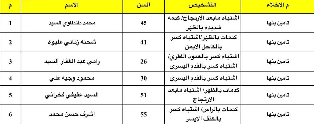 الحالة الصحية للعمال المصابين