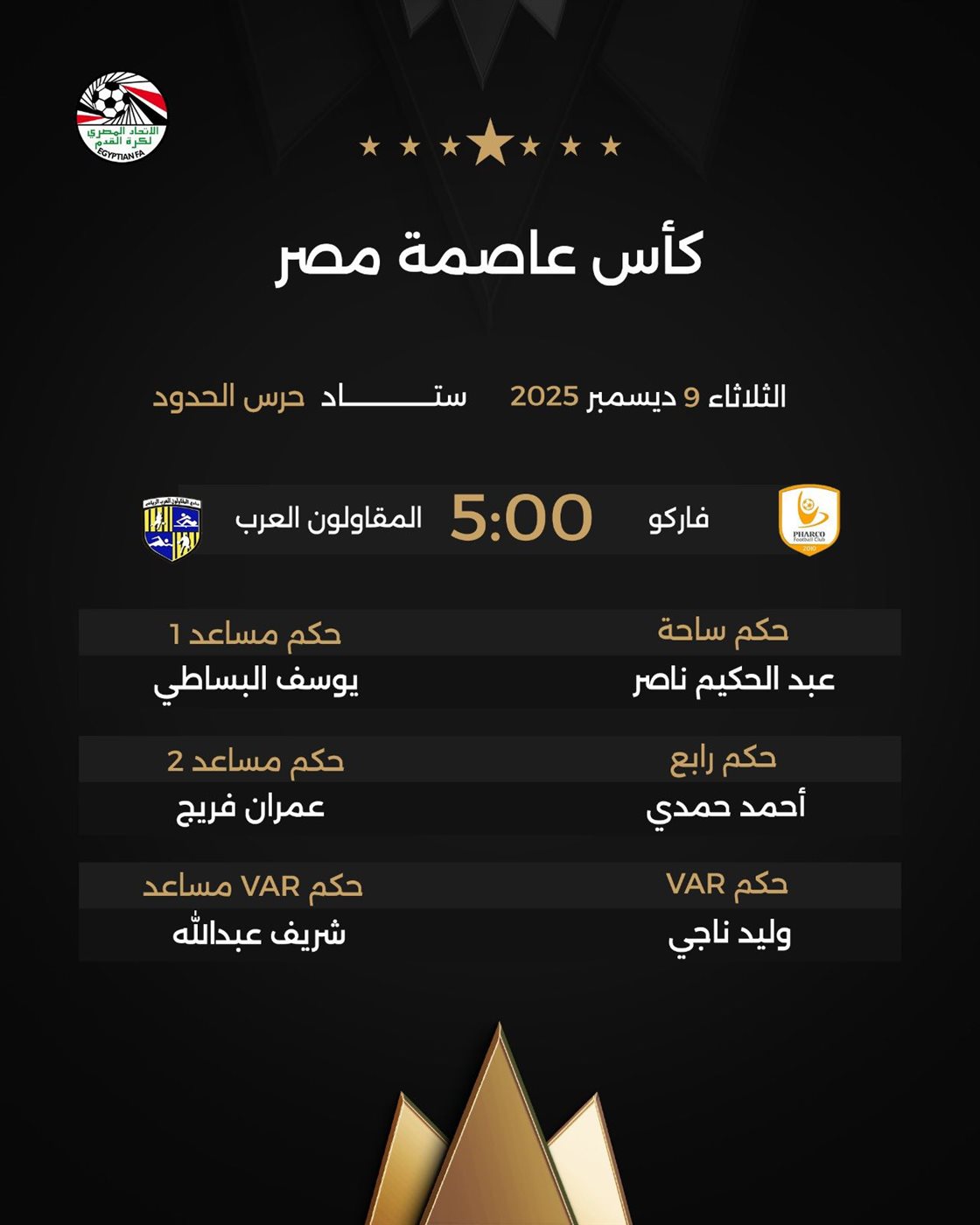 فاركو × المقاولون العرب – 5 مساءً – استاد حرس الحدود