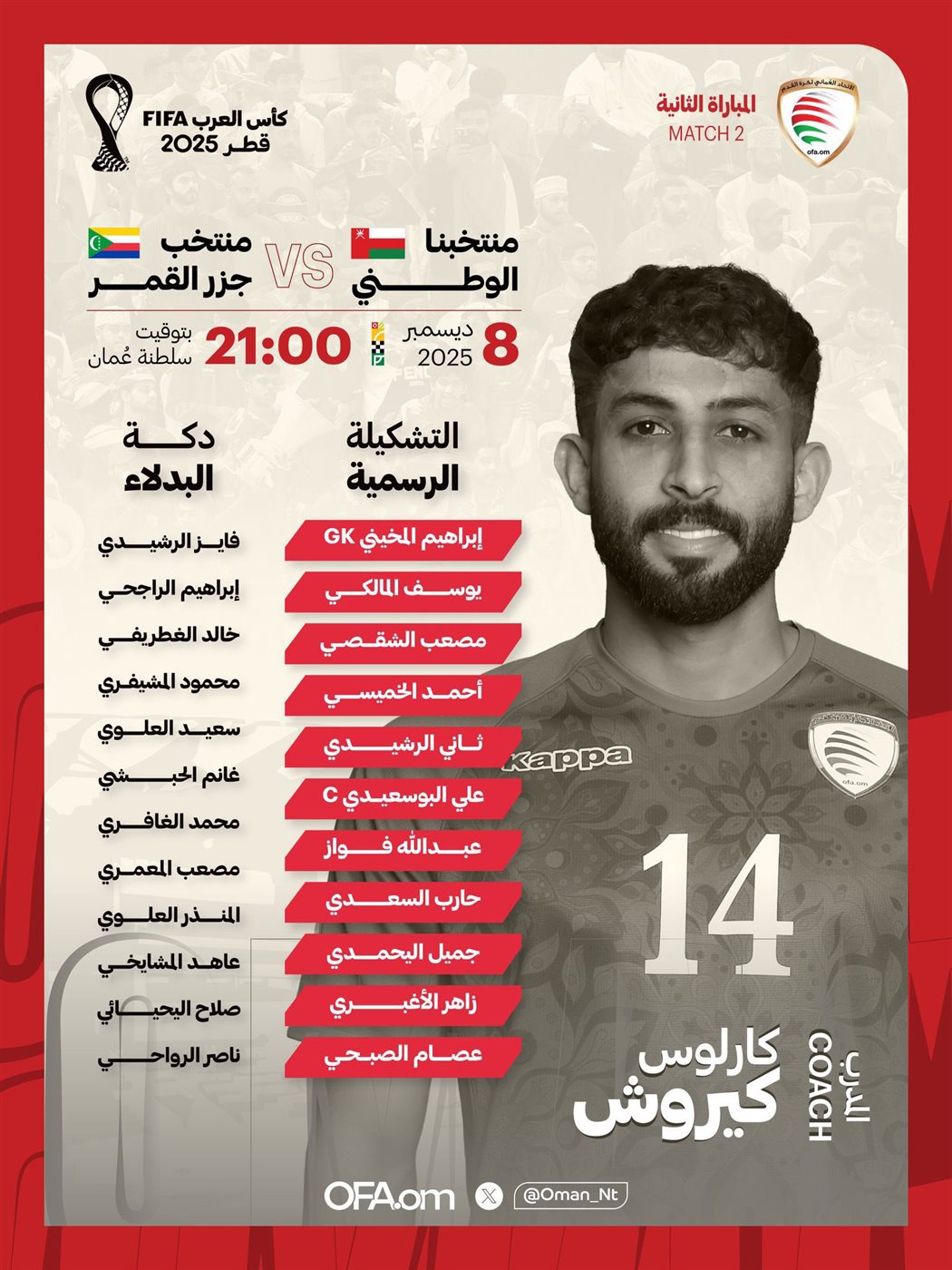 تشكيل عمان الرسمي لمواجهة جزر القمر في كأس العرب