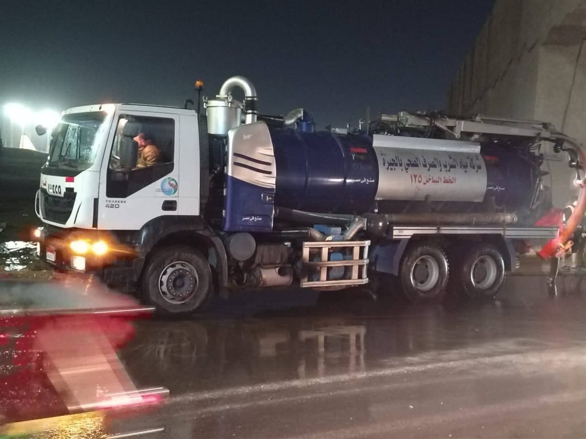 وأوضحت الشركة أن حالة الاستعداد القصوى مستمرة لحين تحسن الأحوال الجوية، مشيرة إلى التنسيق الكامل مع الجهات التنفيذية بمحافظة الجيزة لضمان سرعة التعامل مع أي تراكمات جديدة قد تظهر خلال الساعات المقبلة.