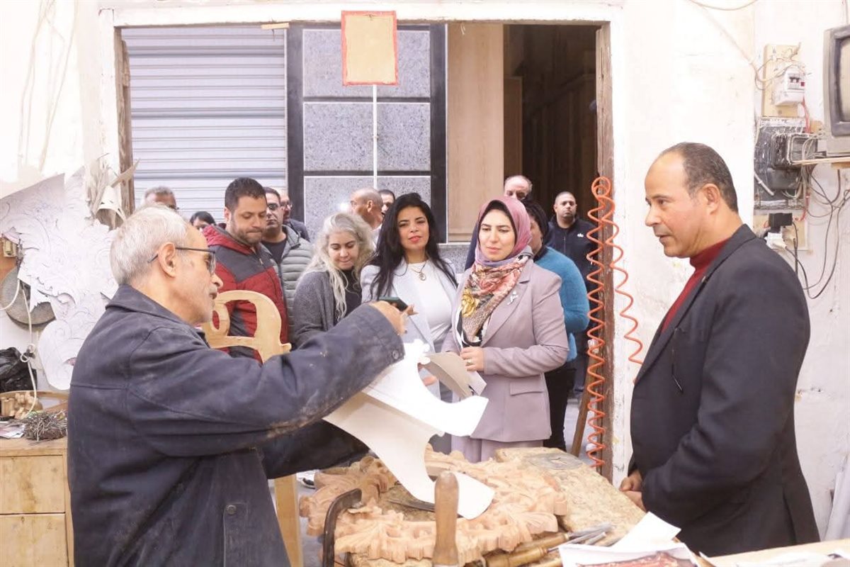 الشارع الذي لا ينام، والورش التي تتنفس خشبا منذ عقود، كانت على موعد مع حديث عن المستقبل، بحضور اللواء طارق بحيري السكرتير العام المساعد للمحافظة، ومسؤولي منظمات الامم المتحدة UN-Habitat وUNIDO، وعدد من قيادات المحافظة.