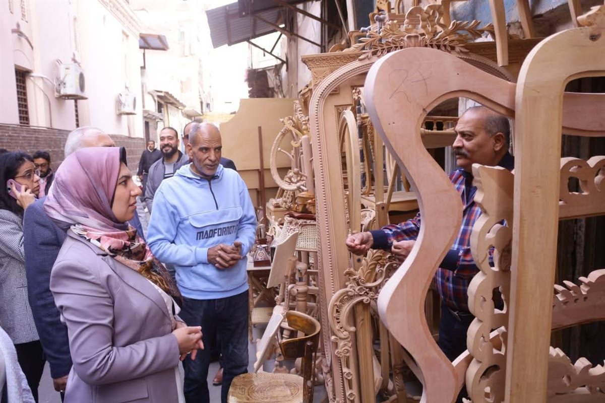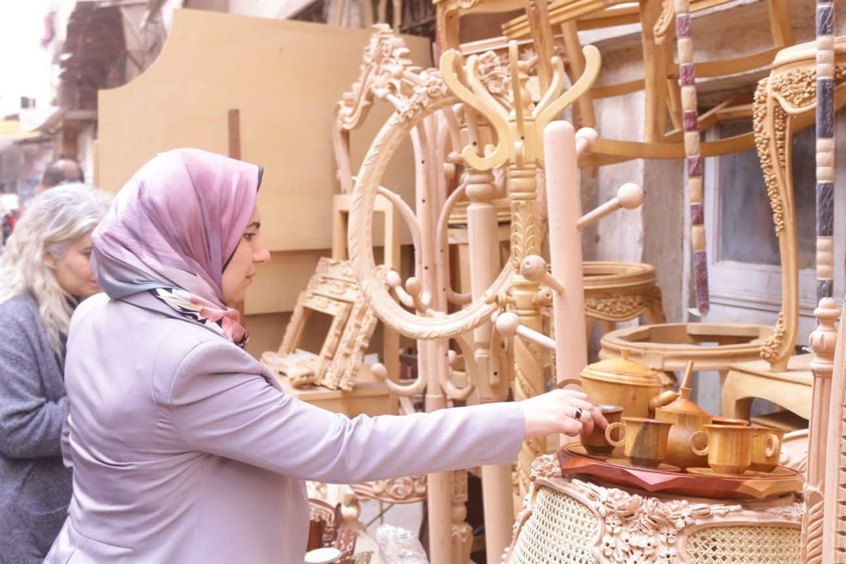 هناك حيث اعتاد النجار الدمياطي ان يحول الجذع الى مهد، والخشب الى تحفة، تفقدت نائب المحافظ ورش النجارة ومعارض الاثاث، تحدثت مع الصناع، استمعت لشكواهم، ورأت بعينها أصابع تلمع بالمجهود وحرفية لا تخطئها العين.