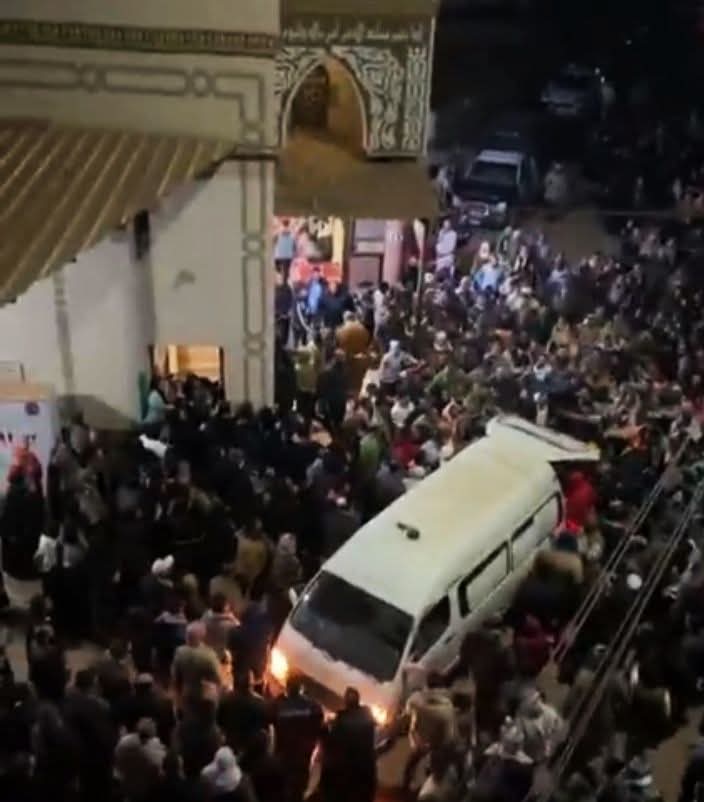 خرج الجثمان من مسجد القرية وشارك في مراسم الجنازة جميع أهالي القرية كبارا وصغارًا رجالًا ونساءً الكل حزين على مقتل السيدة غدرًا علي يد نجل شقيقتها.