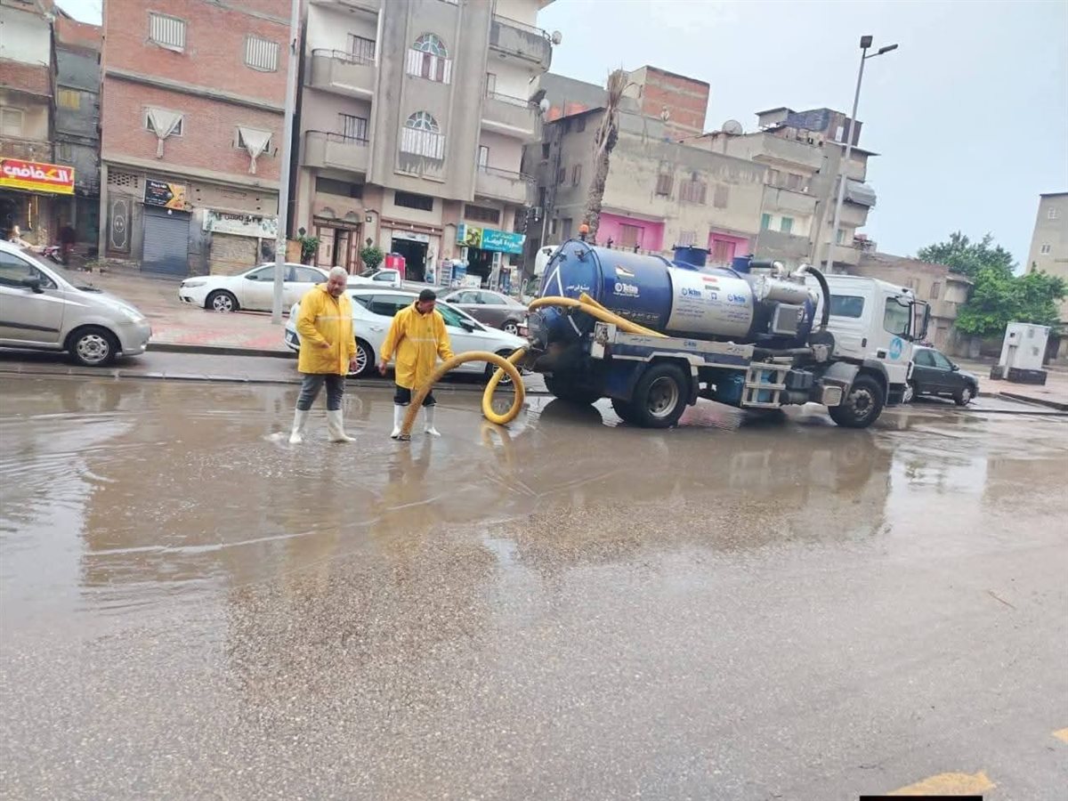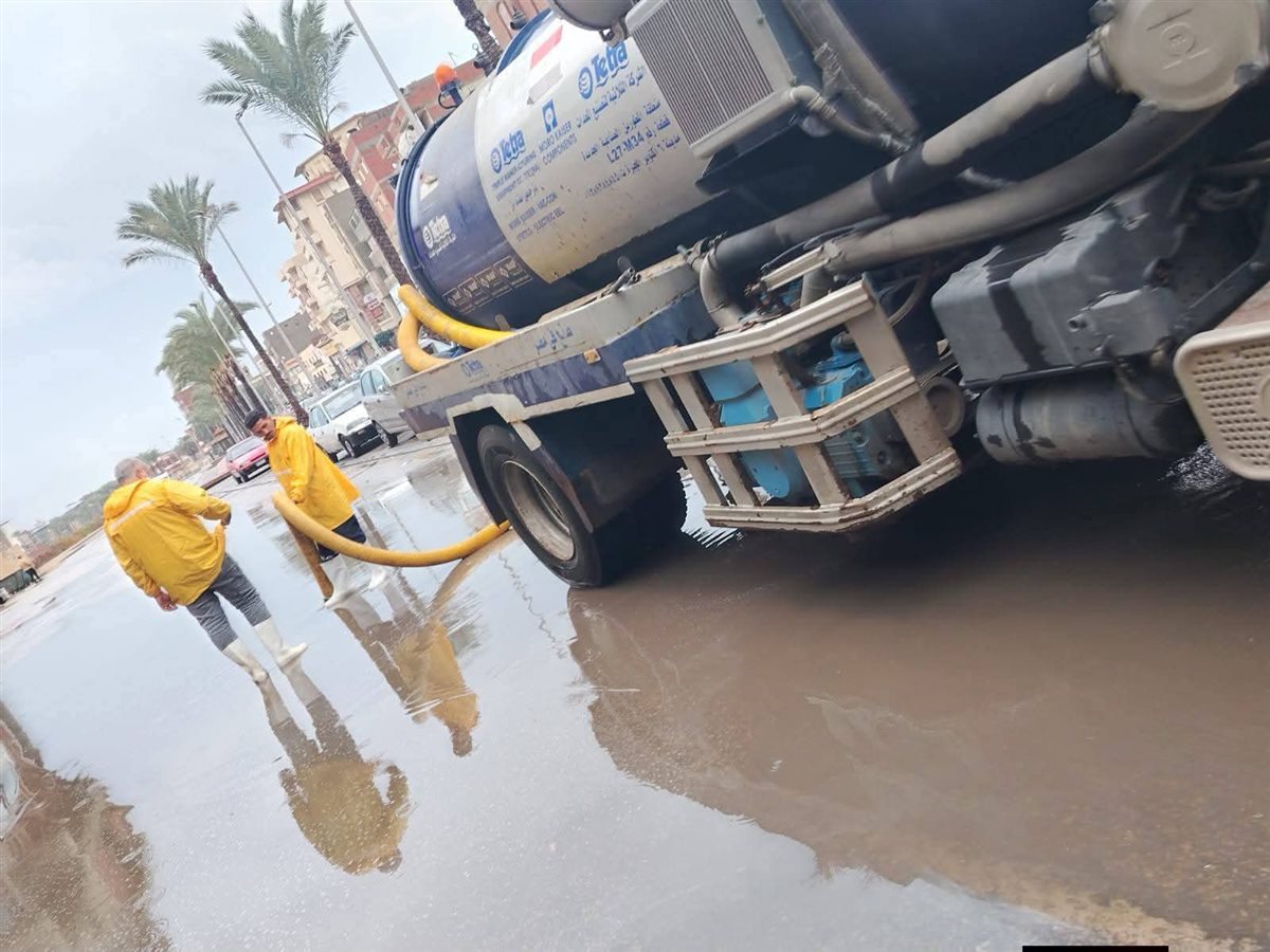 فرق مياه دمياط تواصل جهودها للتعامل مع موجة الطقس السيئ