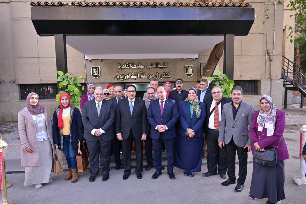 رافق رئيس جامعة القاهرة خلال الافتتاح، الدكتور حسام صلاح عميد كلية طب قصر العيني ورئيس مجلس إدارة مستشفيات جامعة القاهرة، والدكتور حسام حسني المدير التنفيذي لمستشفيات الجامعة، والدكتور عبد المجيد قاسم وكيل الكلية لشئون الدراسات العليا والبحوث، والدكتورة حنان مبارك وكيل الكلية لشئون التعليم والطلاب، والدكتور عمر عزام وكيل الكلية لشئون خدمة المجتمع وتنمية البيئة.