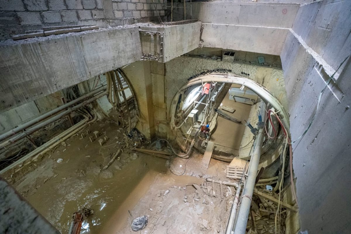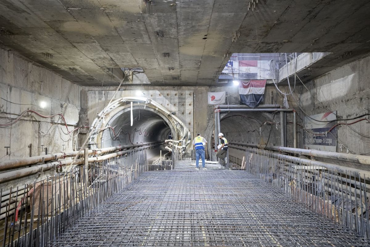 3- يجري حاليًا تنفيذ الأعمال الإنشائية بالمرحلة الأولى بالمحطات كذلك أعمال الحفر النفقي لنفقي المترو (نفق لكل إتجاه) بواسطة 4 ماكينات حفر نفقي (2 ماكينة لكل إتجاه).