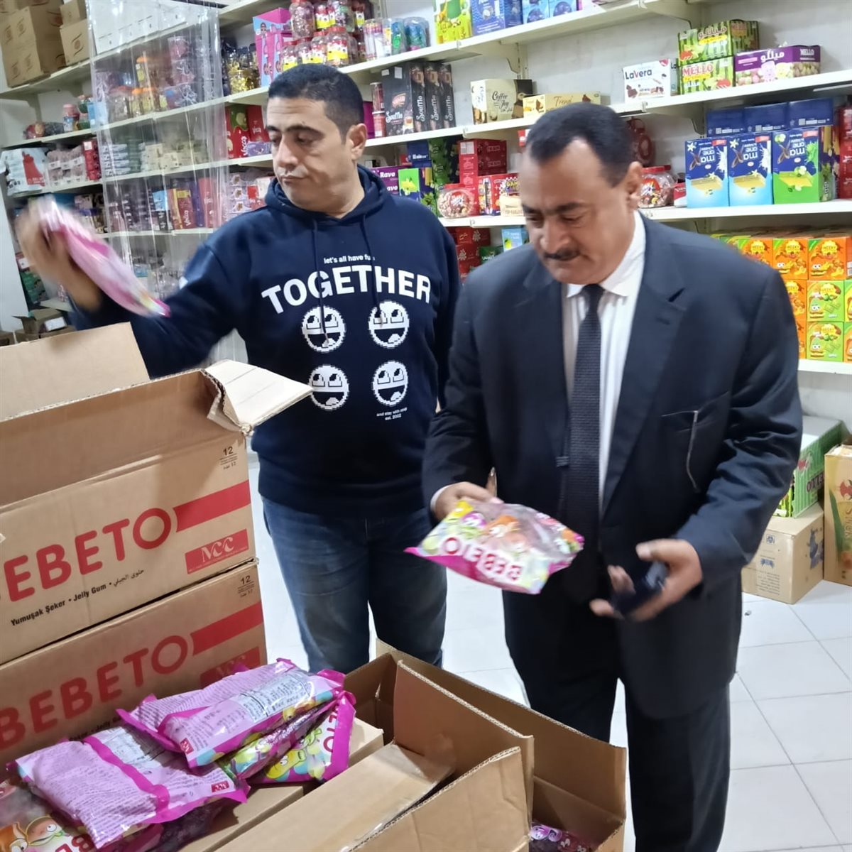 وخلال الجولة، ضبطت الحملة 132 كرتونة كيك منتهية الصلاحية وغير صالحة للاستخدام الآدمي، كما تم ضبط 3432 عبوة غذائية متنوعة مجهولة المصدر وبدون فواتير تثبت مصدرها، وشملت عبوات لبان وغزل بنات وشيبسي وشوكولاتة وجيلي أطفال وقهوة ومشروبات مختلفة، بالاضافة الى كميات اخرى من الكيك ضمن المضبوطات. وتم التحفظ على جميع السلع وتحرير محضر رسمي بالواقعة والعرض على وكيل النائب العام لاستكمال الاجراءات القانونية.