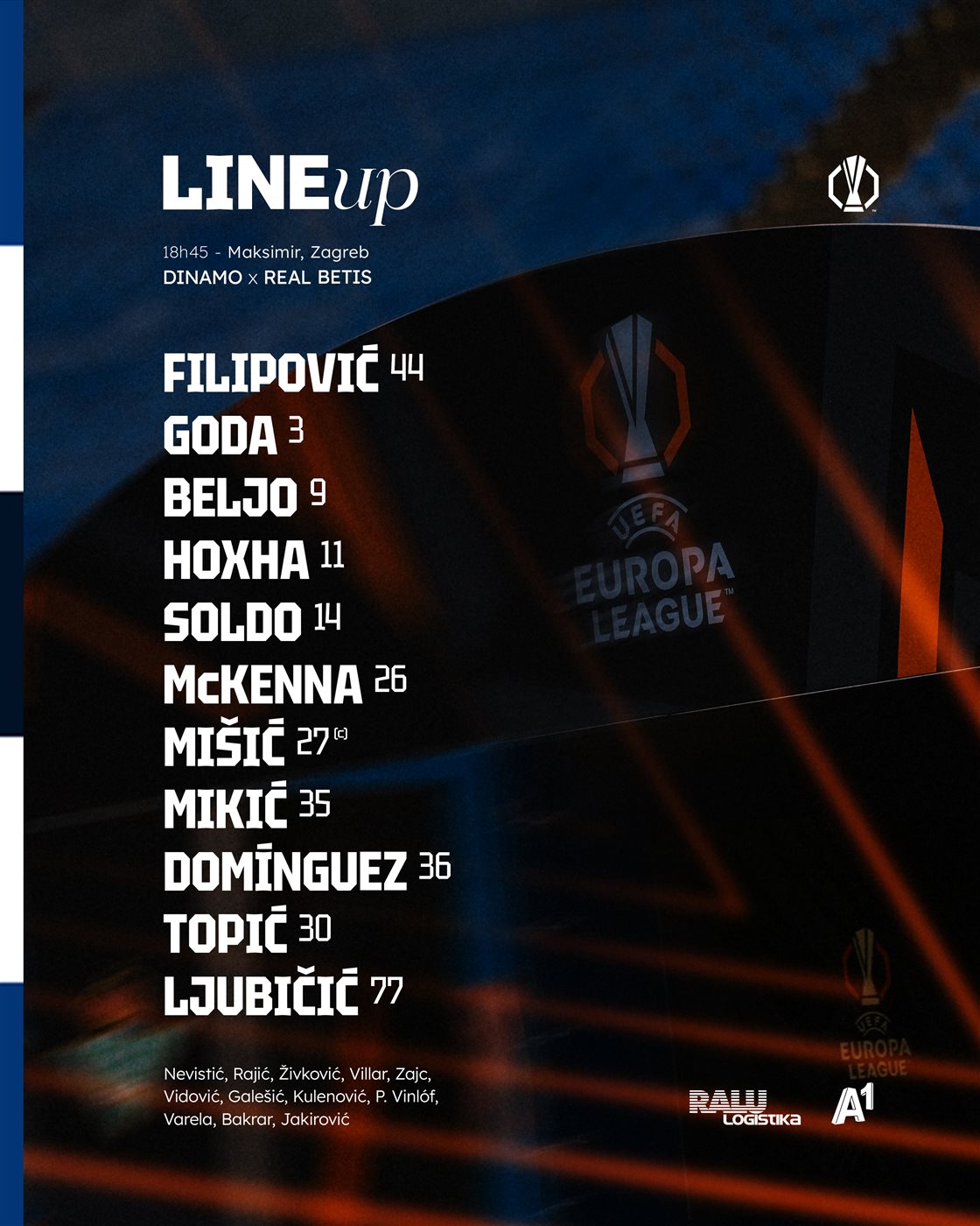 تشكيل دينامو زغرب ضد ريال بيتيس