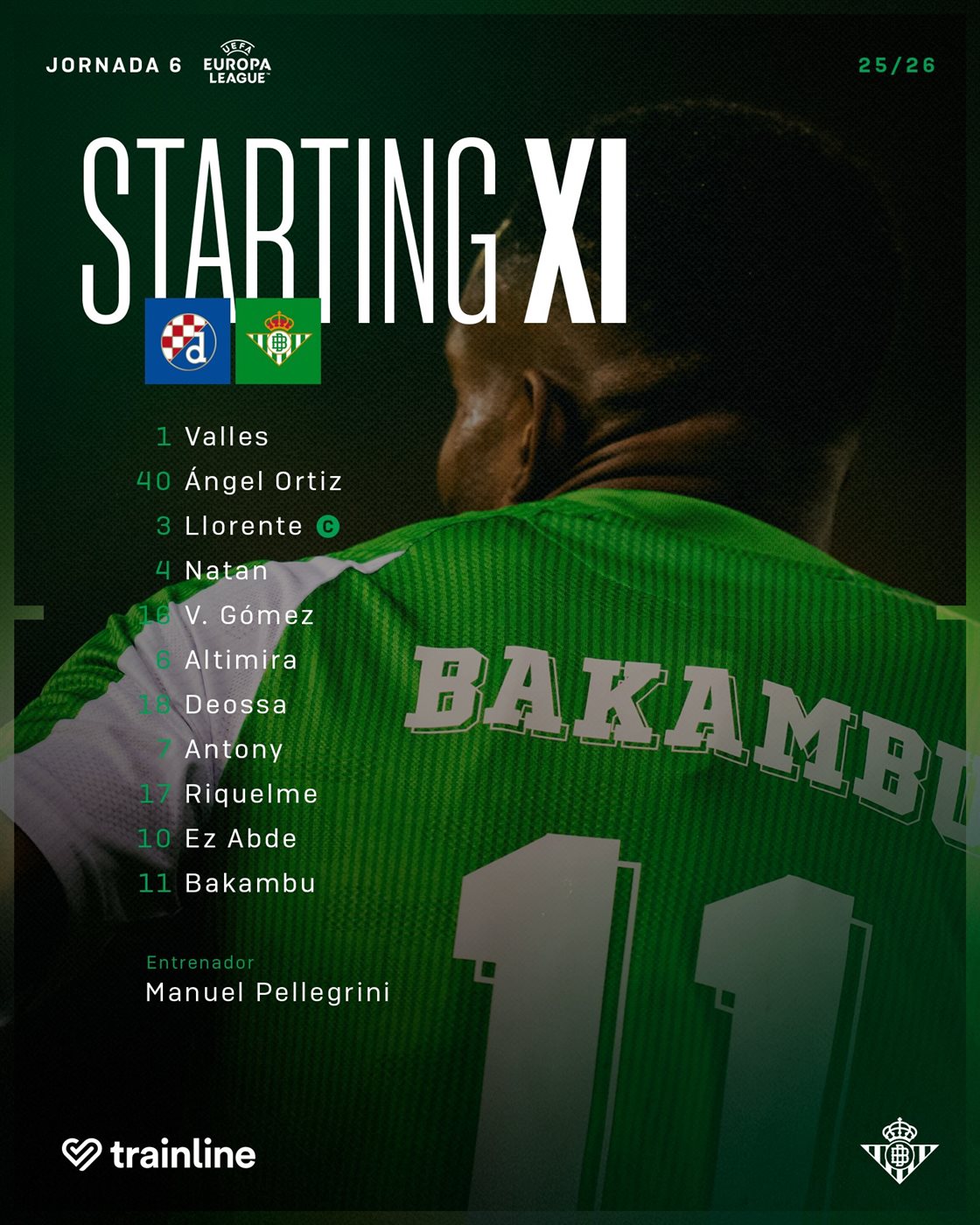 سجل أهداف ريال بيتيس في شباك دينامو زغرب، سيرجي دومينجيز في الدقيقة 31 بهدف في مرماه، رودريجو ريكيلمي في الدقيقة 34، أنتوني في الدقيقة 38، بينما أحرز نيكو جاليسيتش هدف دينامو زغرب في الدقيقة 89.
