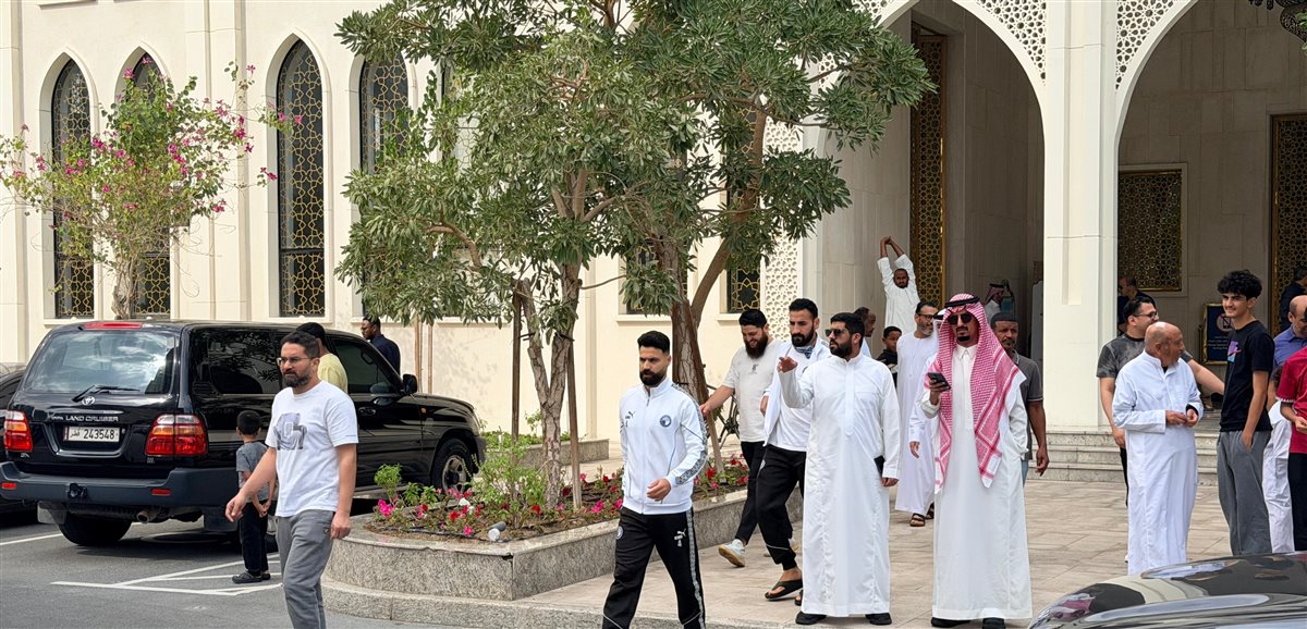بعثة نادي بيراميدز تؤدي صلاة الجمعة بأحد فنادق مدينة لوسيل بالدوحة (صور)