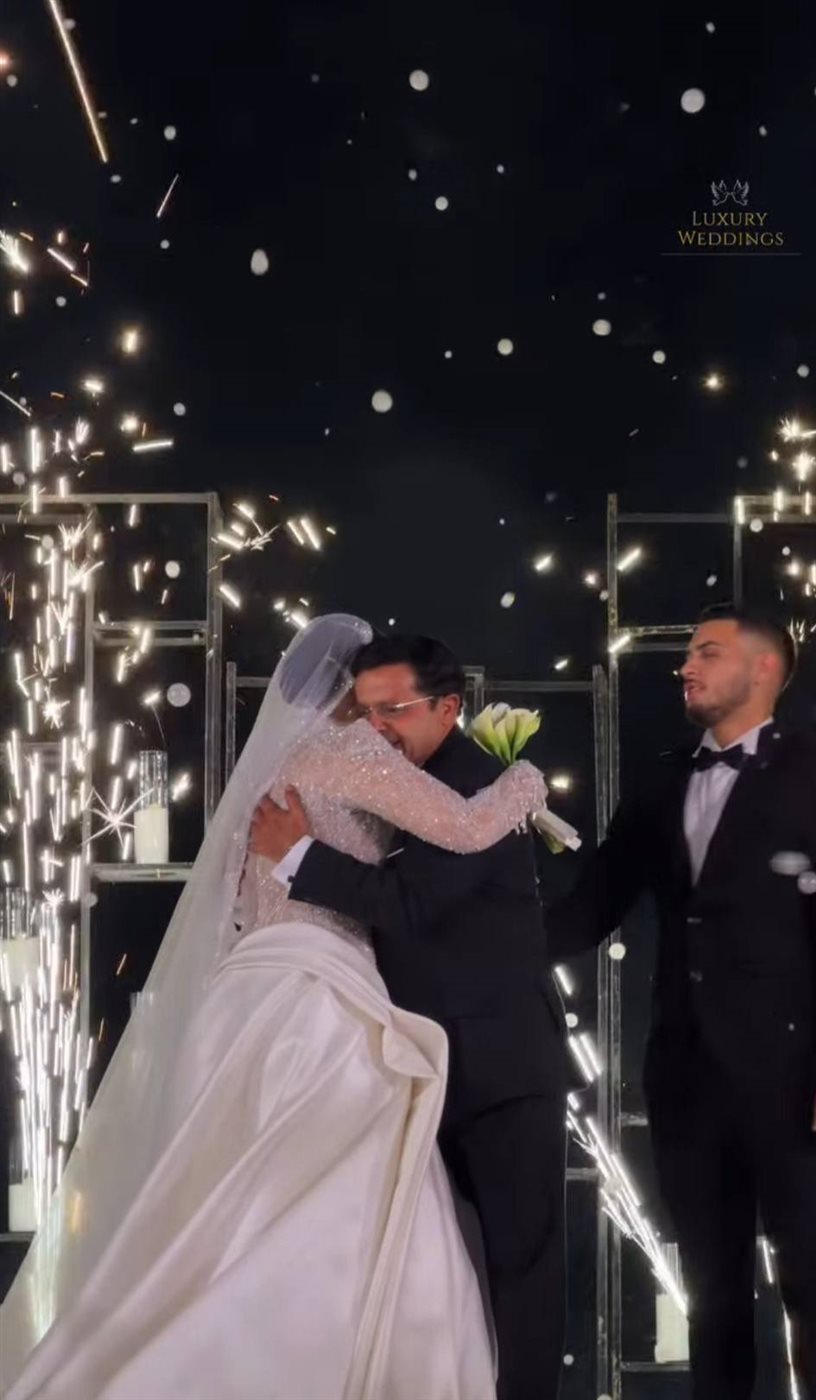 يبكي في حضن ابنته، لقطة مؤثرة من حفل زفاف فريدة محمد هنيدي (صور)