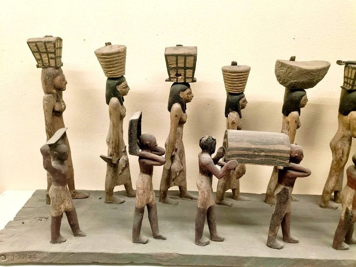 يعرض المتحف المصري بالتحرير، نموذجًا خشبيًا فريدًا من عصر الدولة الوسطى، اكتُشف في سقارة ويعرض بالطابق العلوي بالمتحف لموكب جنائزي يجسد موائد عامرة بالطعام والشراب، وصناديق وسلال مليئة بالملابس والمجوهرات الثمينة، وكلها تسير في طريقها الأخير لتُدفن مع صاحبها.