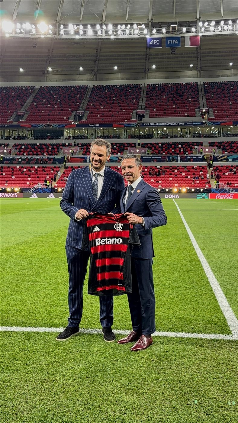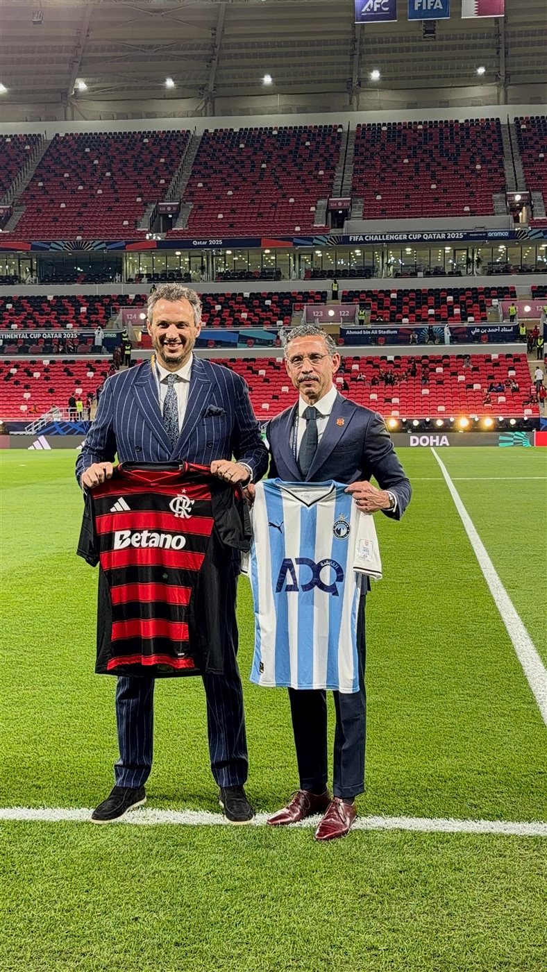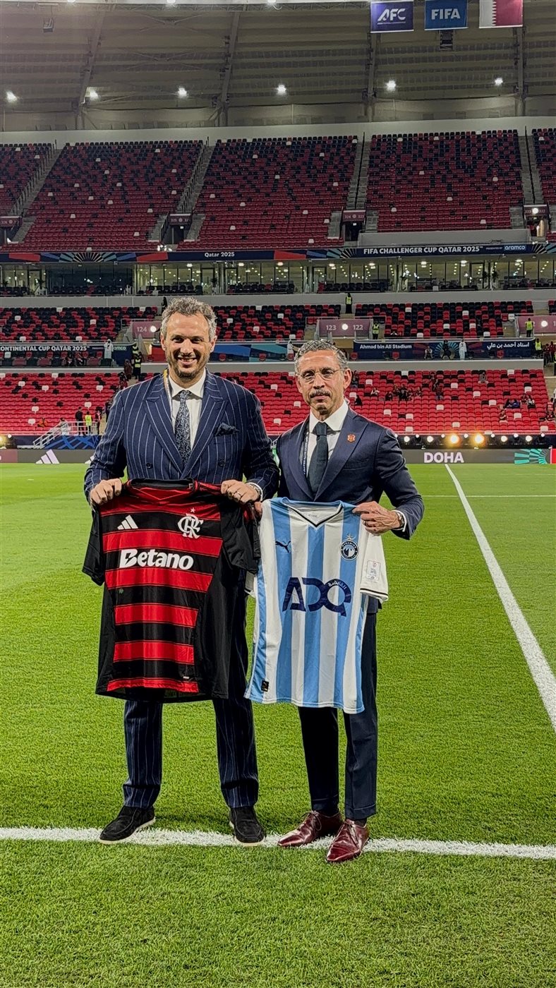 والتقى المهندس ممدوح عيد، بنائب رئيس نادي فلامنجو ورئيس بعثة الفريق في الدوحة، وتبادل الثنائي الهدايا التذكارية وقميصي الفريقين قبل انطلاق المباراة الهامة.
