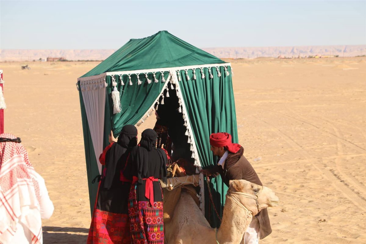 كما شهد مراسم حفل الزفاف البدوي على الهوّدج الذي تم تنظيمه بالقرية التراثية، وأعقبه تفقد معرض المنتجات التراثية.