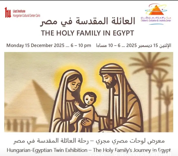 يستضيف مركز الطفل للحضارة والإبداع “متحف الطفل” معرض "رحلة العائلة المقدسة في مصر" وذلك يوم غد الإثنين 15 ديسمبر من الساعة 6 وحتى 10 مساء، بالتعاون مع المركز الثقافي المجري.