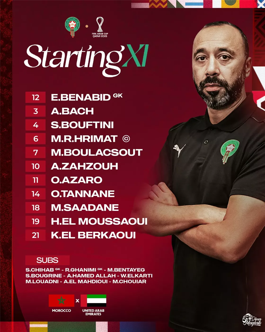 تشكيل مباراة المغرب والإمارات في نصف نهائي كأس العرب