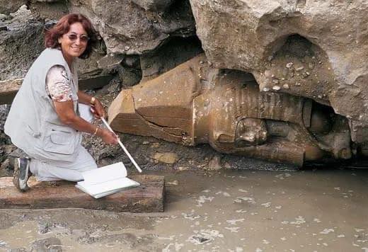 وقالت الدكتورة هوريج سورزيان أن البعثة كانت قد عثرت على مدار سنوات عملها بالمشروع على أجزاء من هذين التمثالين بصورة متفرقة بالموقع، ولكنهم كانوا في حالة سيئة من الحفظ، حيث غمرها الطمي والمياه المالحة، كما تمت استعادة بعض الكتل الجرانيت المكونة لقاعدة التمثالين، من المتحف المفتوح بمعابد الكرنك.