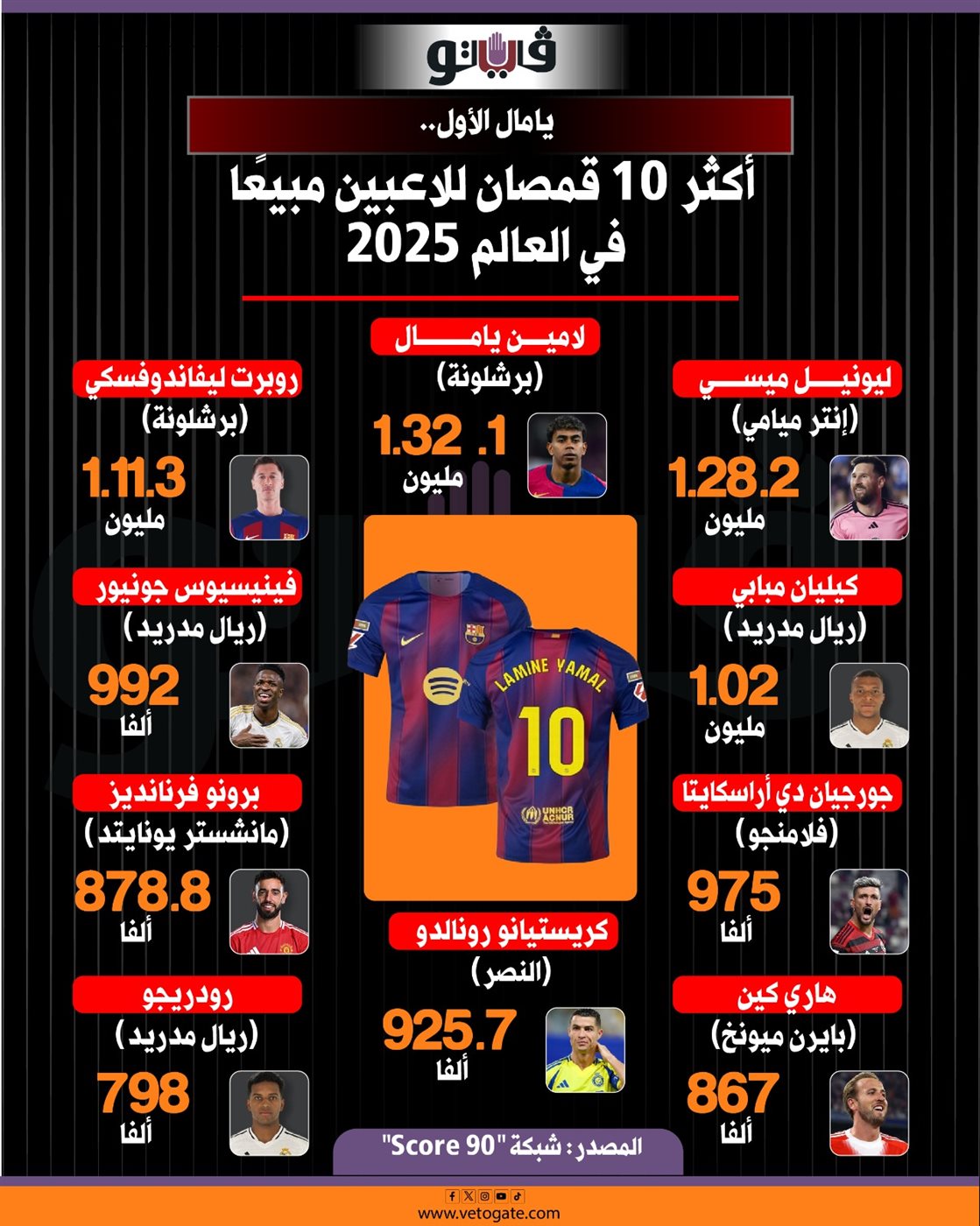 يامال الأول.. أكثر 10 قمصان للاعبين مبيعا في العالم 2025 (إنفوجراف)