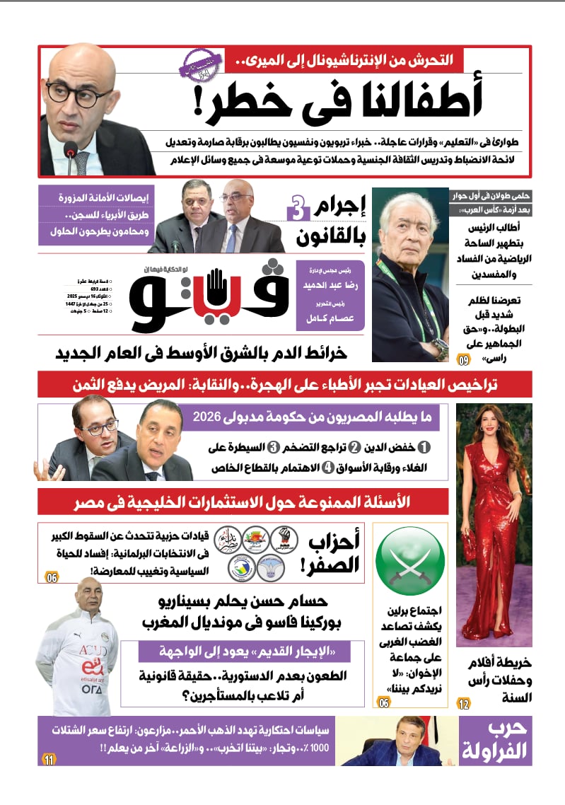 تكشف فيتو في عددها الجديد عن الخطر الذي يتعرض له الأطفال في مدارس الإنترناشيونال من التحرش وسط غياب الرقابة على هذه المدارس.. وخبراء تربويون ونفسيون يطالبون برقابة صارمة وتعديل لائحة الانضباط وتدريس الثقافة الجنسية وحملات توعية موسعة فى جميع وسائل الإعلام.