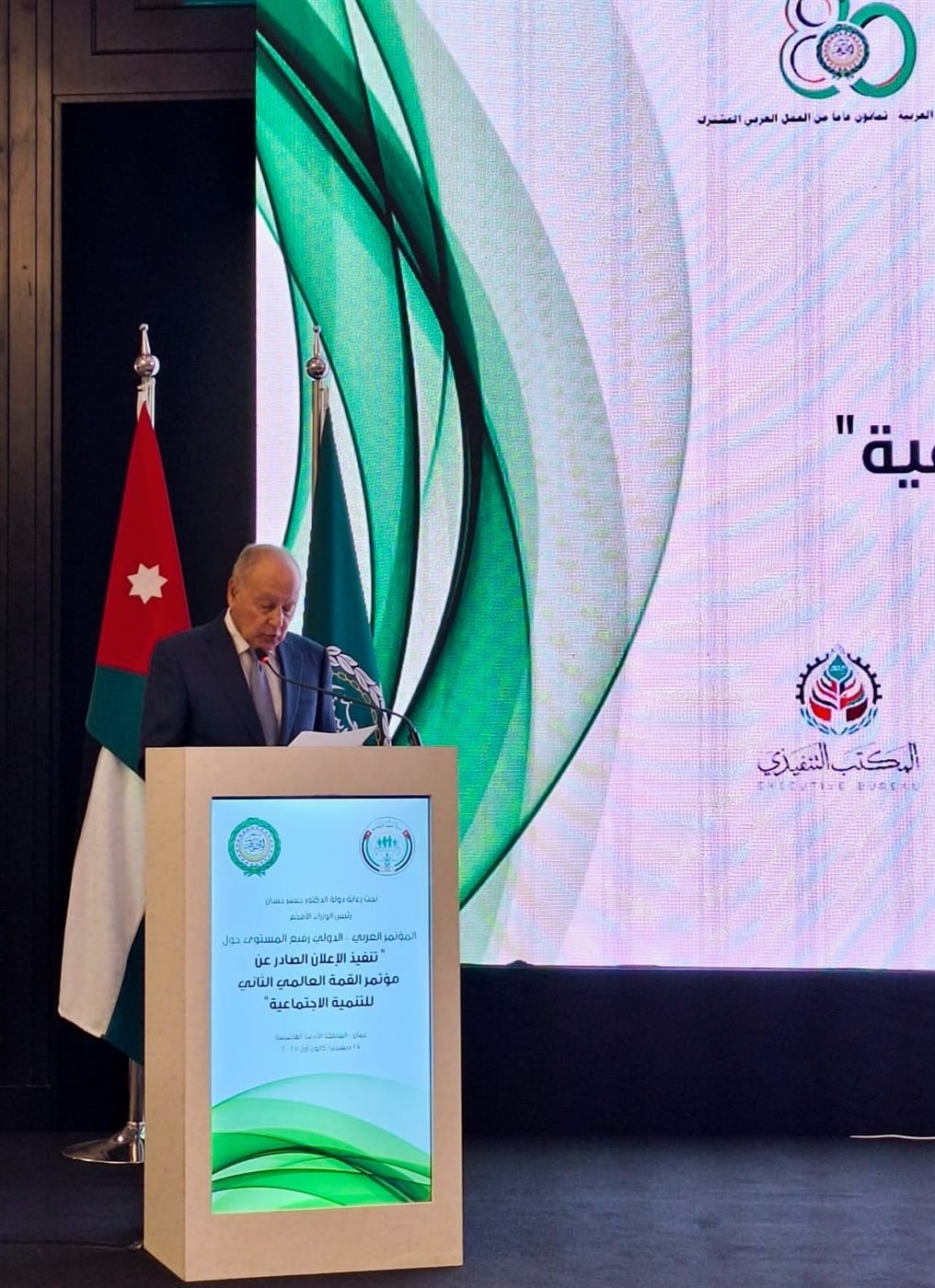 في كلمته الافتتاحية، عبّر الأمين العام لجامعة الدول العربية أحمد أبو الغيط عن تقديره لاستضافة المملكة الأردنية الهاشمية لهذا المؤتمر، مؤكدًا أن عمّان تواصل لعب دور محوري في احتضان الفعاليات العربية والدولية الهادفة إلى تعزيز العمل المشترك، لا سيما في القضايا الاجتماعية والتنموية التي تمس المواطن العربي بشكل مباشر.