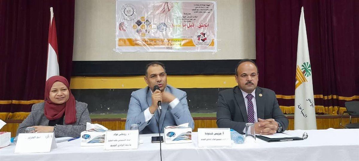 عقد مجمع إعلام الوادى الجديد، اليوم الأربعاء، ندوة موسعة في إطار حملة قطاع الإعلام الداخلى لمواجهة الشائعات تحت شعار (اتحقق قبل ما تصدق) برعاية الكاتب الصحفى ضياء رشوان رئيس الهيئة العامة للاستعلامات وتوجيهات دكتور أحمد يحيى رئيس قطاع الإعلام الداخلى واشراف حمدى سعيد رئيس الإدارة المركزية لإعلام شمال ووسط الصعيد.