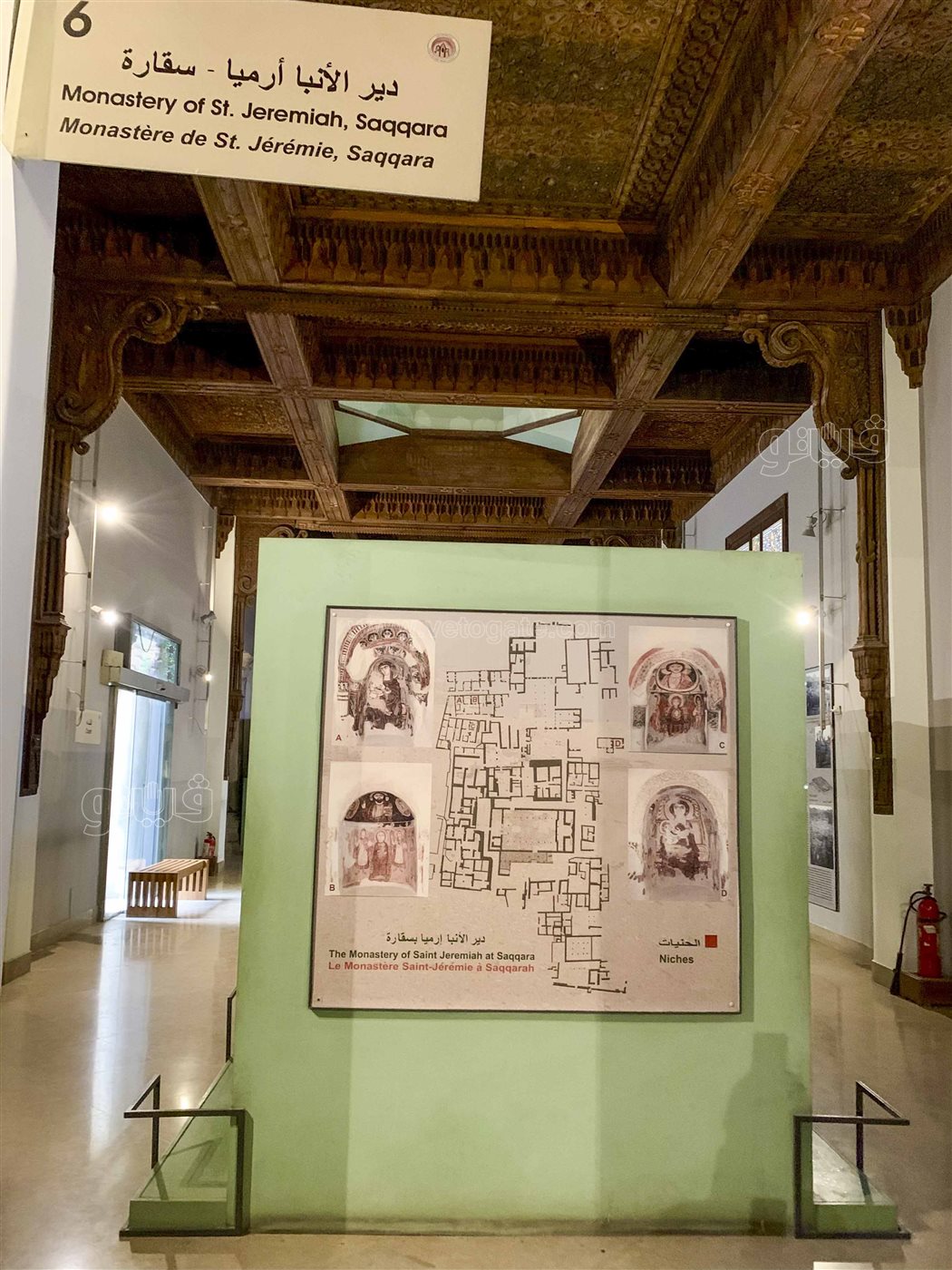 قاعة الخشب: تضم أبواب الكنائس، حواجز الهيكل، ومنابر خشبية محفورة بدقة، تُظهر مهارة الصانع القبطي والتأثيرات الفنية المتبادلة مع الحضارات المحيطة.