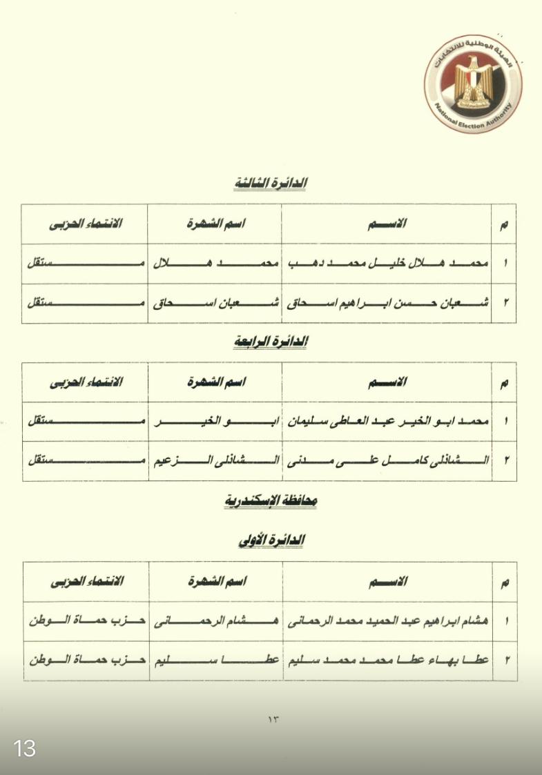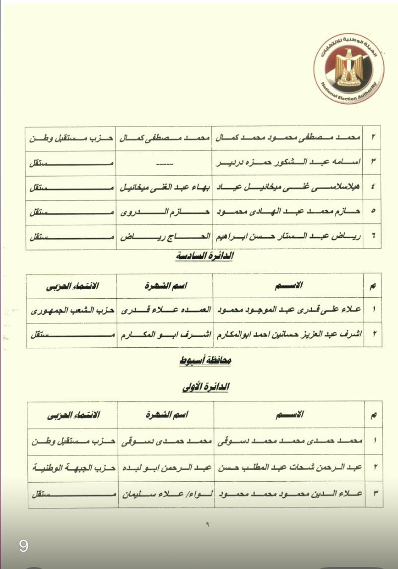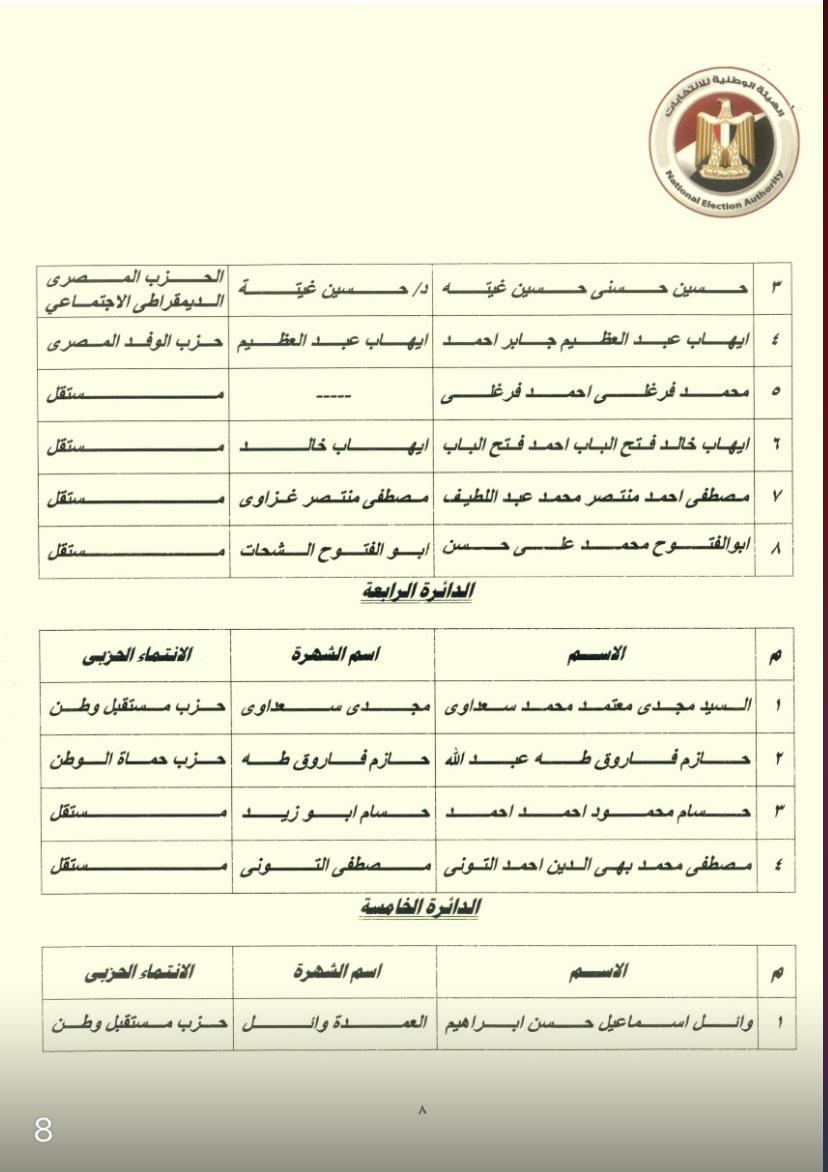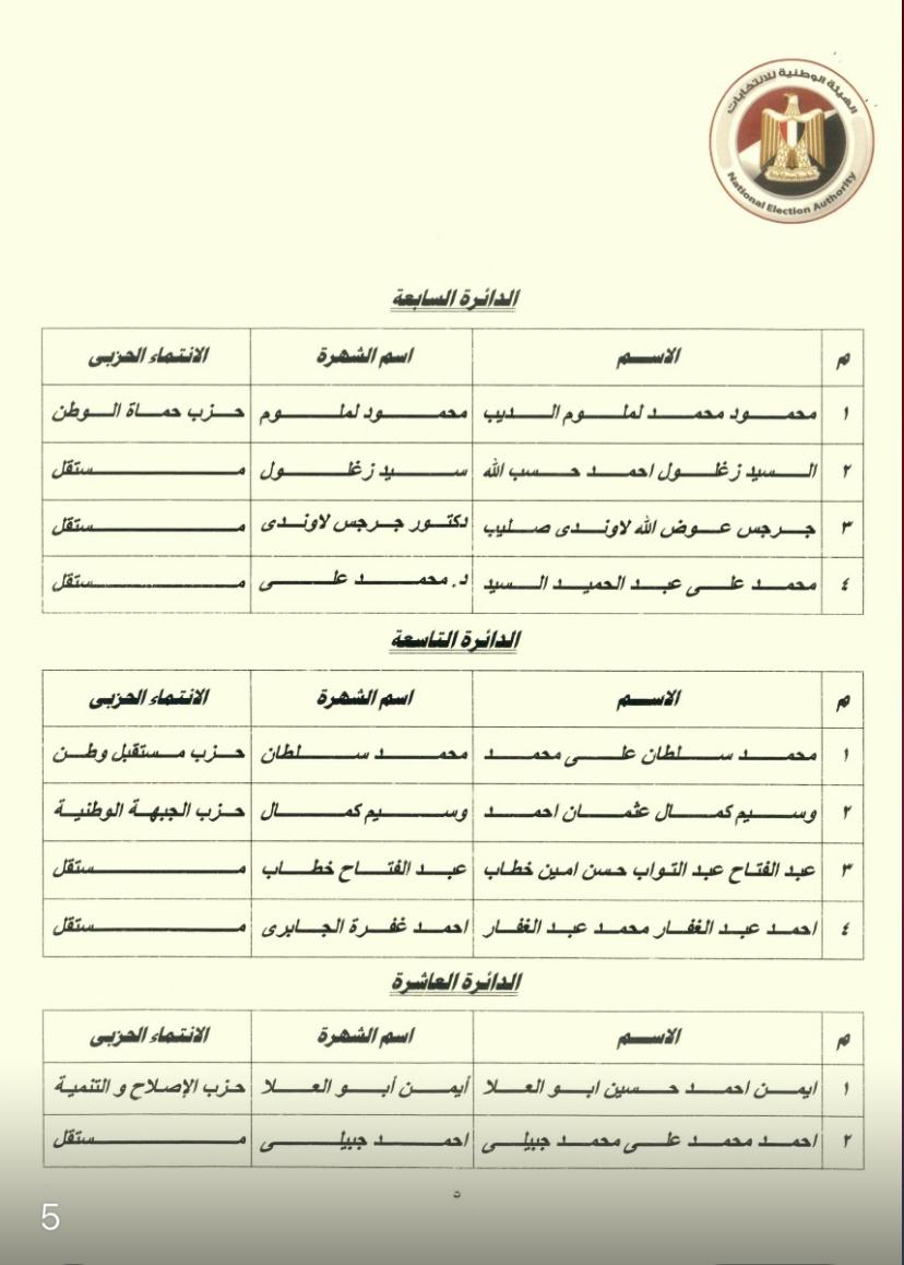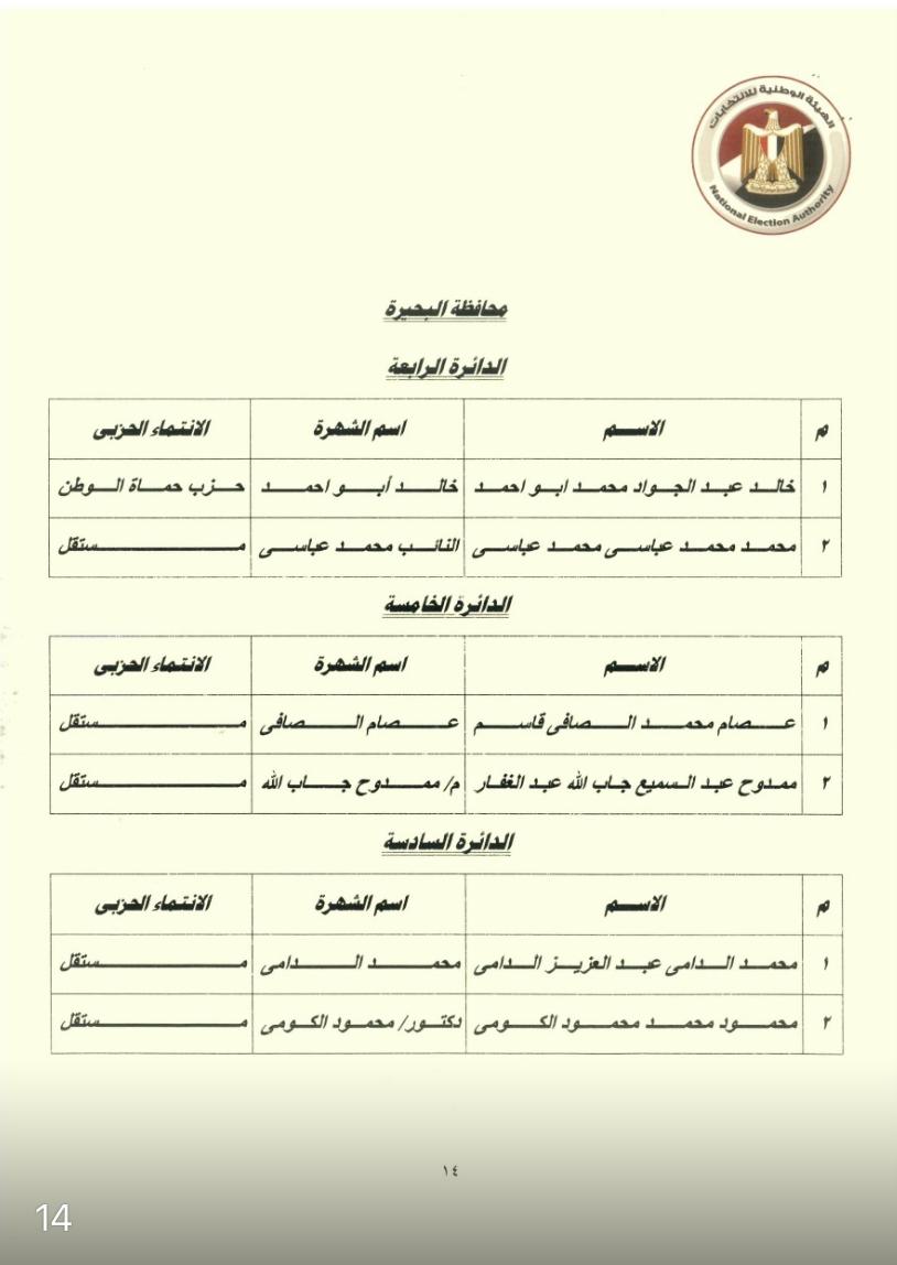 وجاءت جولة الإعادة بين المرشحين المبين أسمائهم على النحو التالي: