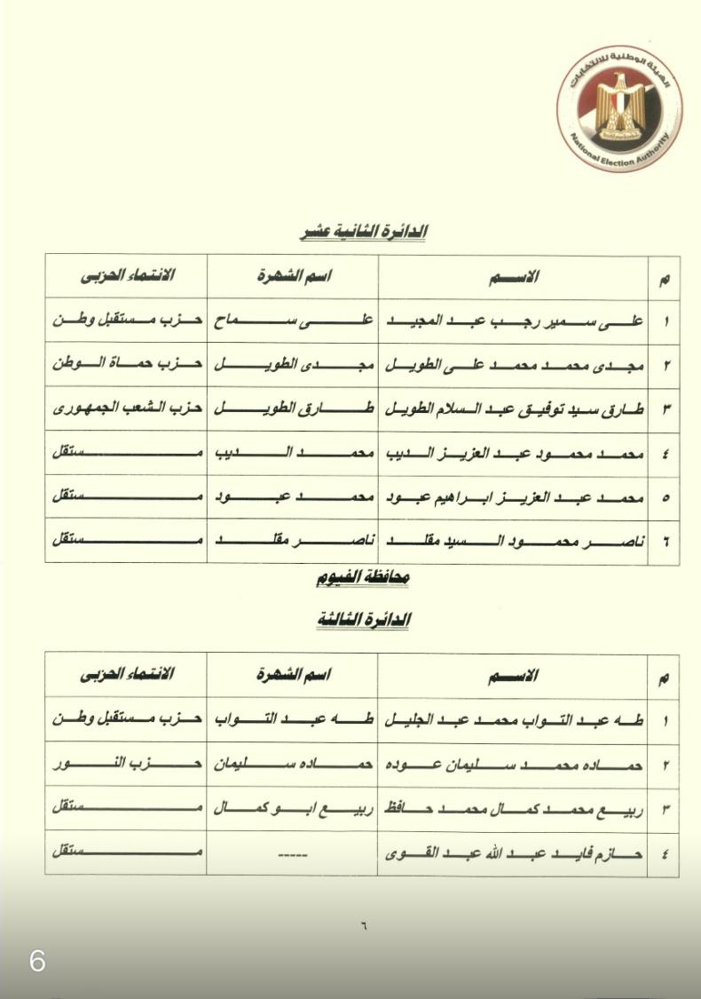 "الوطنية للانتخابات" تعلن أسماء المرشحين بجولة الإعادة للمرحلة الأولى لـ30 دائرة انتخابية ملغاة بحكم قضائي