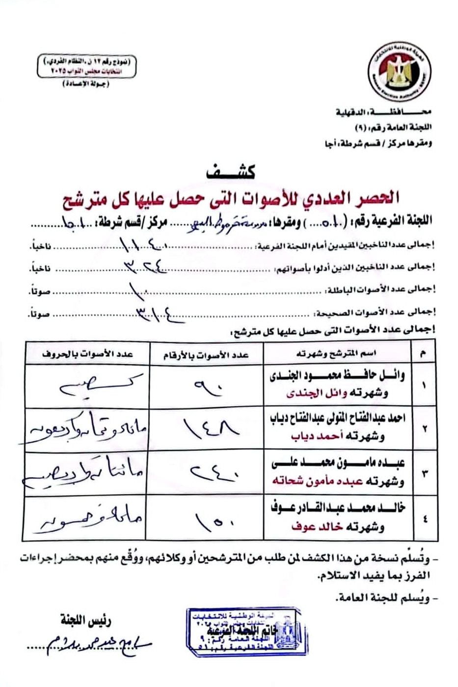 حصلت فيتو على الحصر العددي للأصوات التي حصل عليها كل مرشح في اللجنة الفرعية رقم 51 ومقرها مدرسة قرموط البهو مركز أجا بمحافظة الدقهلية.