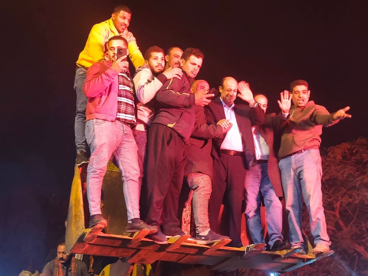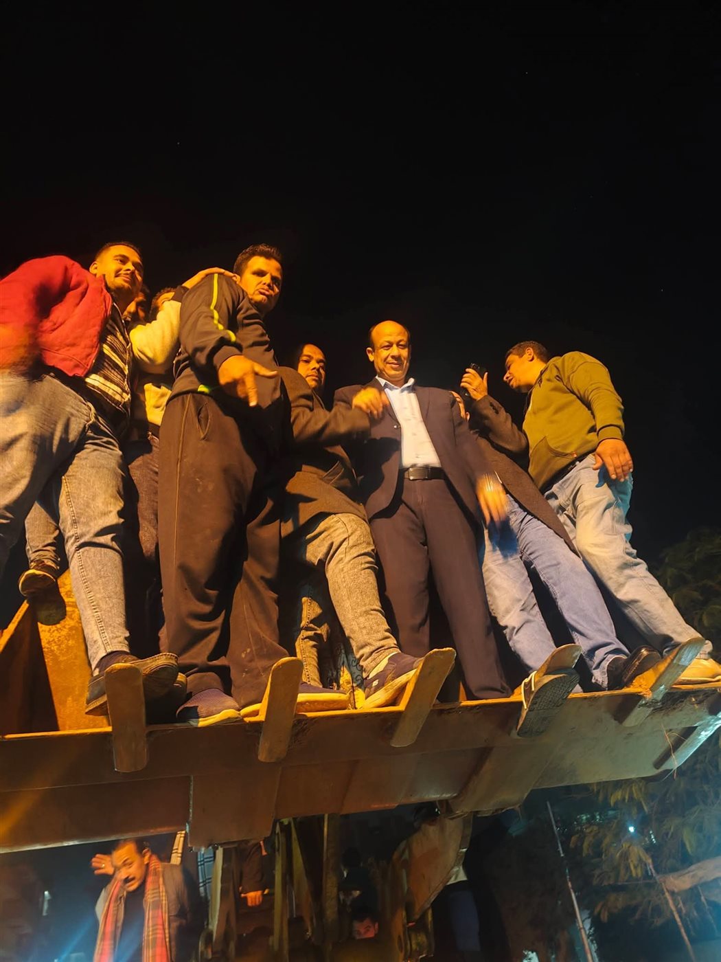 احتفل المرشح سمير البيومي لحصوله على مقعد ضمن نتائج الحصر العددي لدائرتي قليوب والقناطر الخيرية من فوق لودر وسط تجمع أنصاره الشماريخ والألعاب النارية.