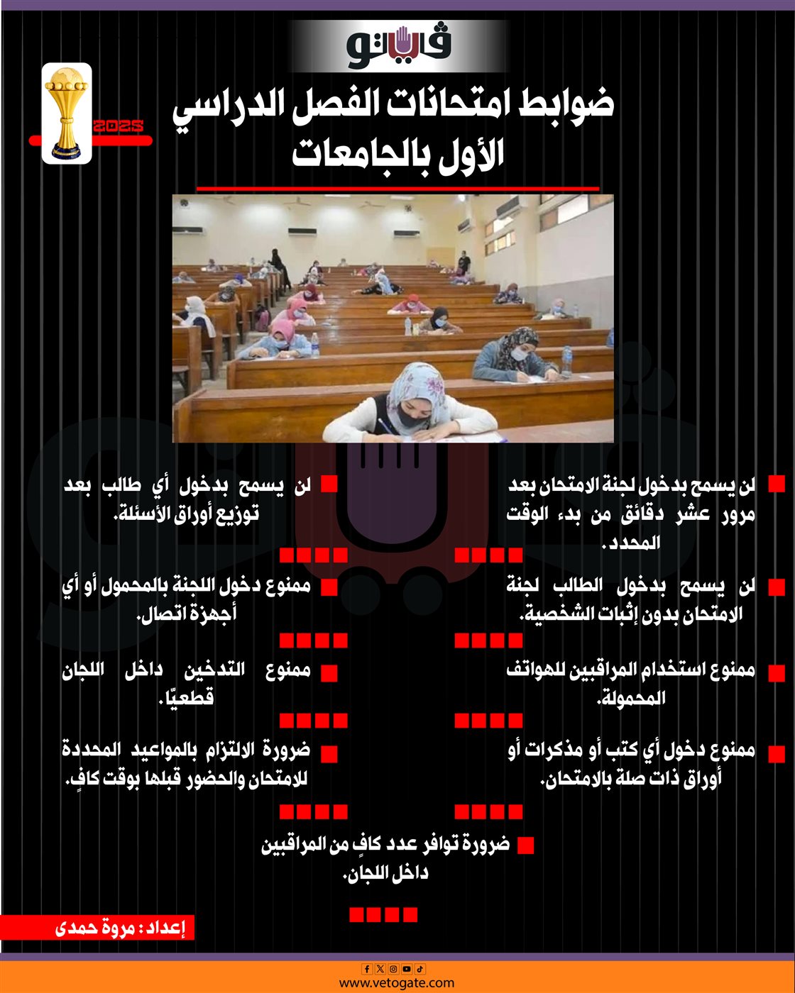 ضوابط امتحانات الفصل الدراسي الأول بالجامعات (إنفوجراف)