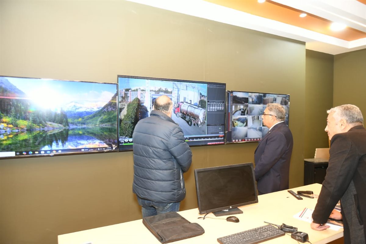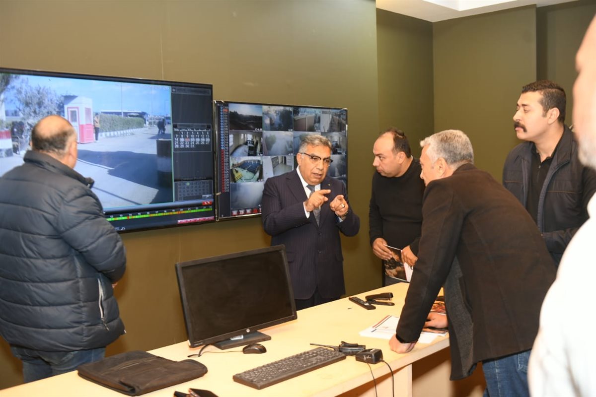 وتركزت الجولة على تفقُّد منظومة الأمن والسلامة، حيث اطمأن المحافظ على أداء كاميرات المراقبة، وانتظام إجراءات دخول وخروج السيارات والأفراد من خلال البوابات الرئيسية للمنطقة، وأكد المحافظ على ضرورة تطبيق أعلى معايير الأمن، وانضباط عمليات الدخول والخروج لضمان سير العمل وحماية المنشآت.