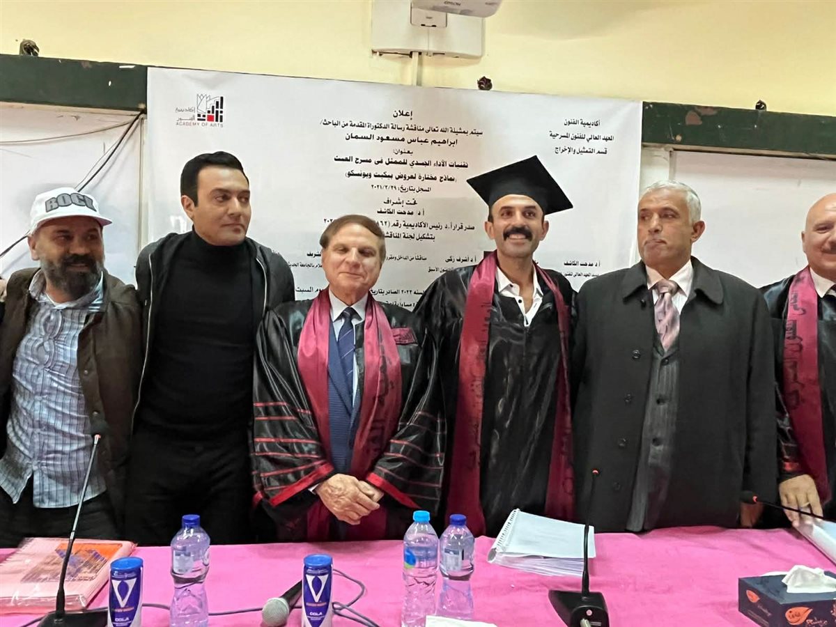 حصل الفنان والباحث إبراهيم السمان على درجة الدكتوراه بمرتبة الشرف من أكاديمية الفنون، وذلك عقب مناقشة رسالته العلمية بقسم التمثيل والإخراج بالمعهد العالي للفنون المسرحية، وسط حضور أكاديمي وفني لافت.