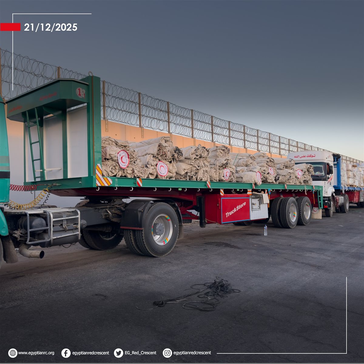 ونظرًا لسوء الأحوال الجوية التي يشهدها قطاع غزة، عزز الهلال الأحمر المصري القافلة بإمدادات الشتاء الأساسية، التي شملت: 4,700 بطانية، أكثر من 90 ألف قطعة ملابس شتوية، أكثر من 5 آلاف مرتبة، ونحو 7,800 خيمة لإيواء المتضررين، وذلك في إطار الجهود المصرية المتواصلة لدعم الأشقاء في غزة.