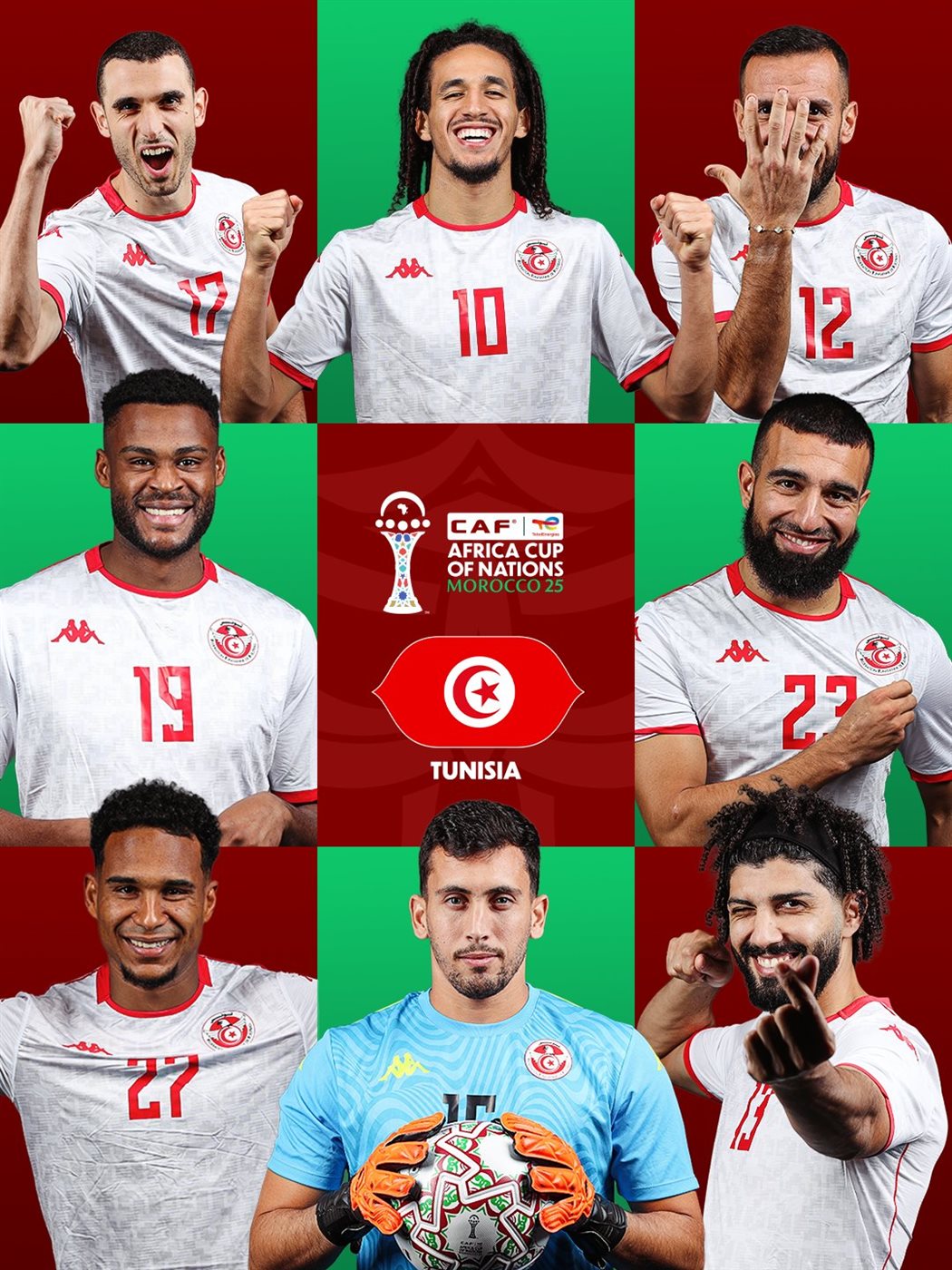 وضمّت قائمة تونس أسماء بارزة في مختلف المراكز، حيث تواجد في حراسة المرمى كل من: أيمن دحمان وبشير بن سعيد ونور الدين الفرحاتي ومصعب بن حسن، فيما جاءت خيارات الدفاع بقيادة ياسين مرياح ومنتصر الطالبي وعلي معلول إلى جانب ديلان برون وعلي العابدي وغيرهم.