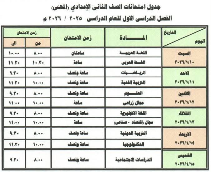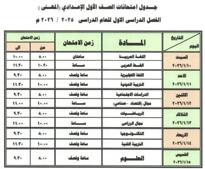 كما تقرر أن تبدأ امتحانات التعليم الفني اعتبارا من يوم السبت 4 يناير 2026، بما يتناسب مع طبيعة الدراسة العملية والنظرية لكل تخصص داخل مدارس التعليم الفني بالمحافظة.