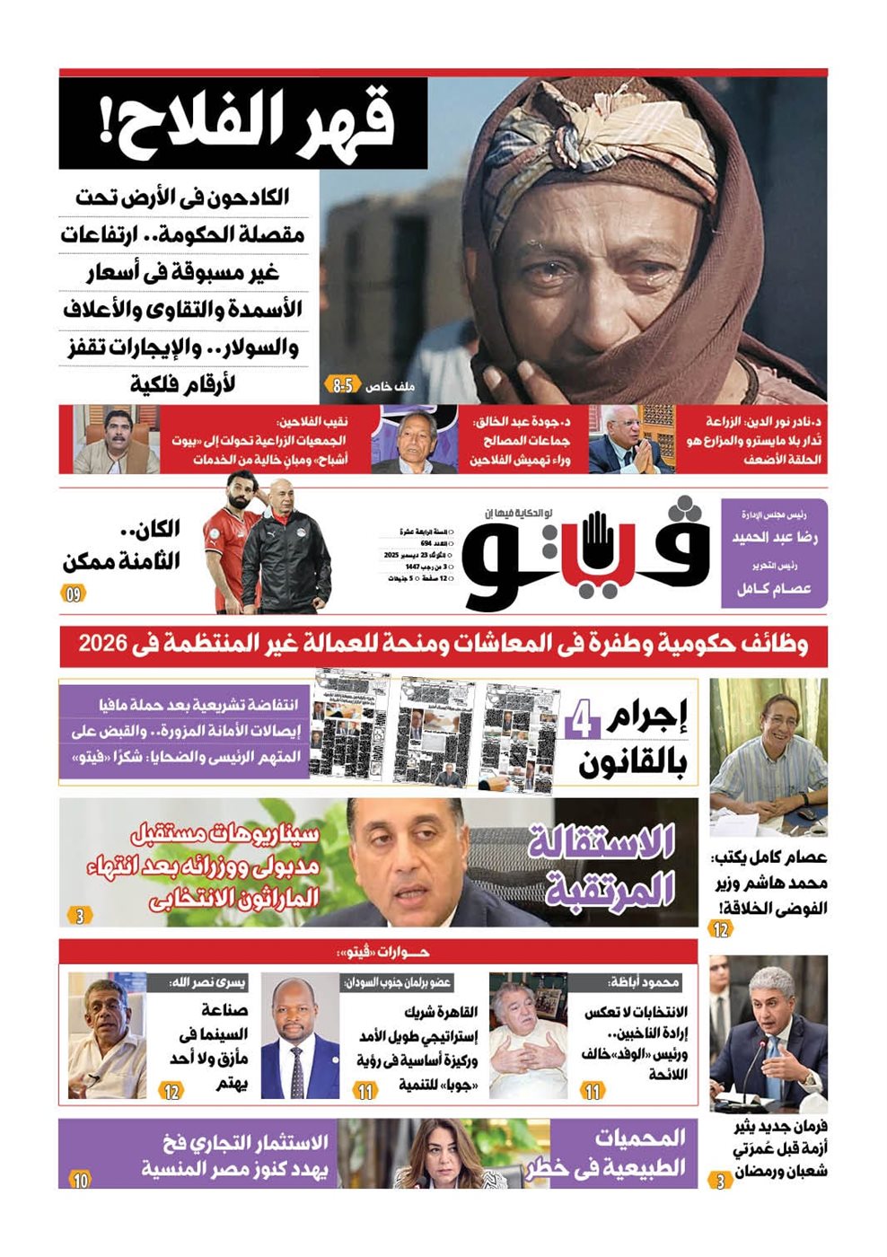 فيتو تكشف في عددها الجديد.. قهر الفلاح! الكادحون في الأرض تحت مقصلة الحكومة