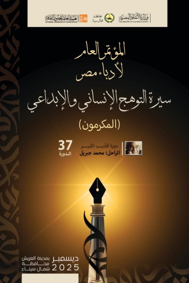 تنطلق فعاليات الدورة السابعة والثلاثين من المؤتمر العام لأدباء مصر خلال الفترة من 26 إلى 29 ديسمبر الجاري بمحافظة شمال سيناء، "دورة الأديب الكبير الراحل محمد جبريل"، تحت رعاية الدكتور أحمد فؤاد هنو وزير الثقافة، واللواء دكتور خالد مجاور محافظ شمال سيناء، وتنظمه الهيئة العامة لقصور الثقافة برئاسة اللواء خالد اللبان.