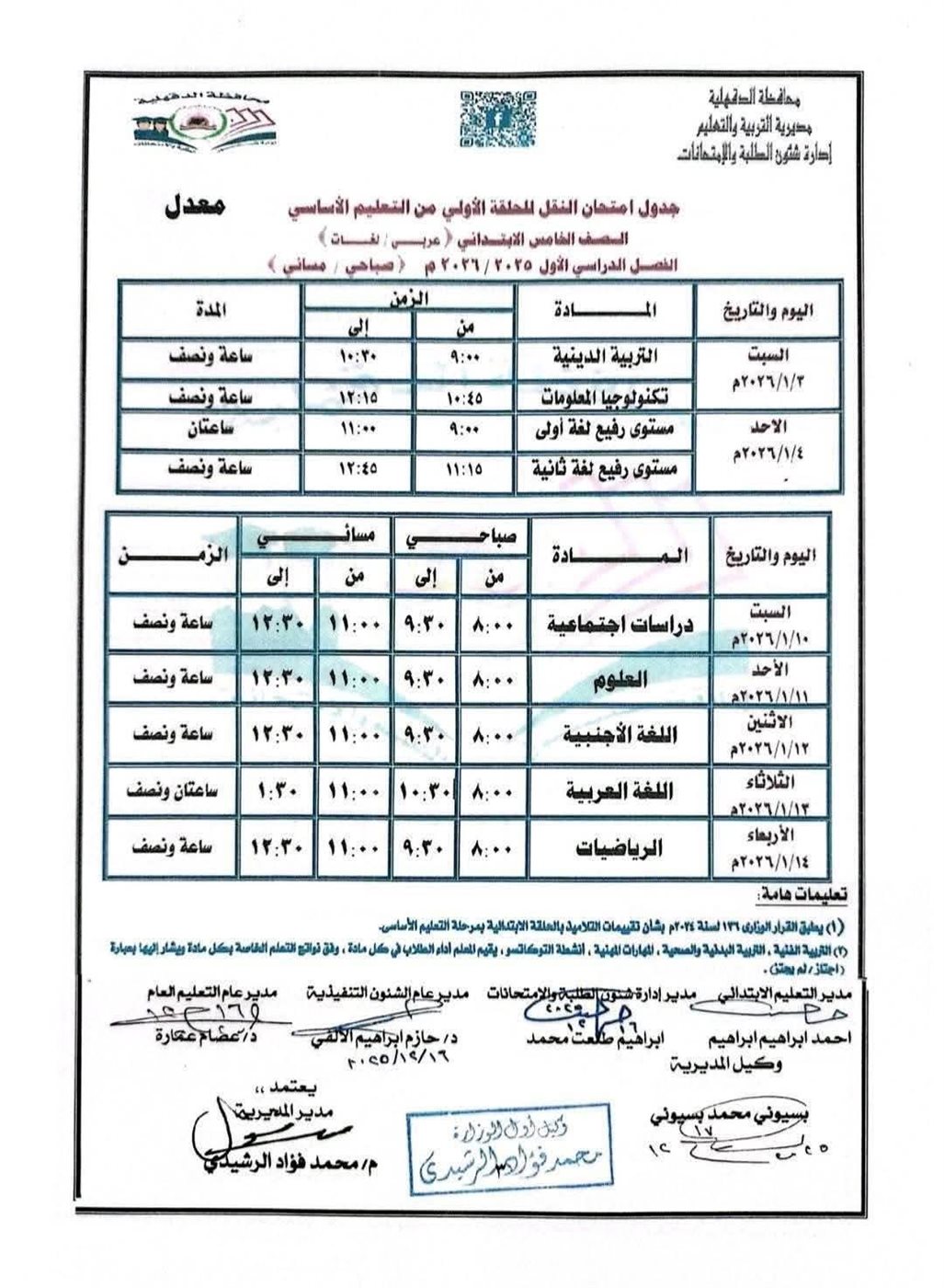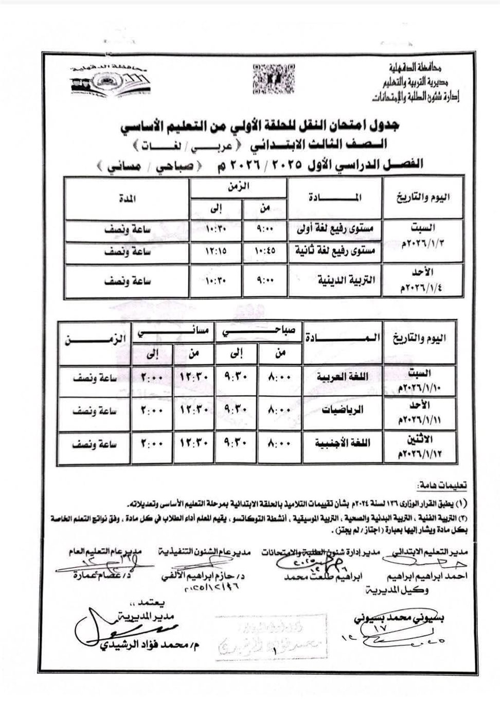 تعليم الدقهلية تعلن مواعيد امتحانات الفصل الدراسي الأول 2025/ 2026