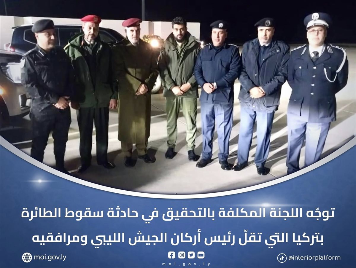 بناءً على التعليمات الصادرة عن وزير الداخلية المكلّف لواء "عماد مصطفى الطرابلسي في حكومة الوحدة الوطنية الليبية، غادرت اللجنة الرسمية المكلّفة بالتحقيق، برئاسة لواء محمود عاشور العجيلي، متوجّهةً إلى تركيا، وذلك لمباشرة مهامها التحقيقية في حادثة سقوط الطائرة التي تقلّ رئيس أركان الجيش الليبي الفريق محمد الحداد ومرافقيه.