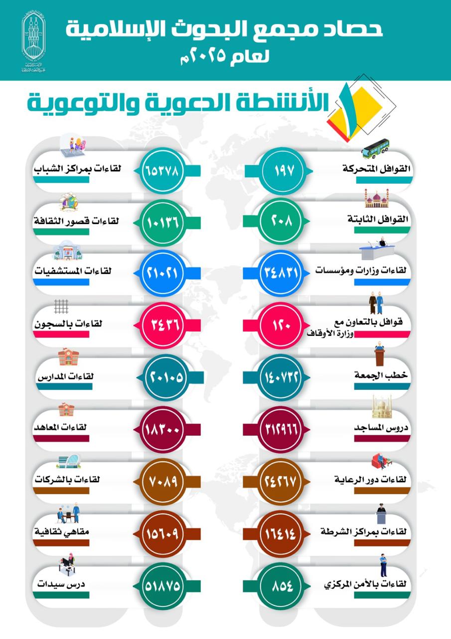 البحوث الإسلامية في 2025، 577 قافلة دعوية و760 ألف لقاء ديني و99 ألف ندوة