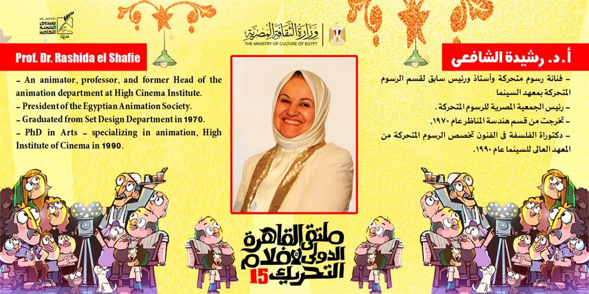 كما كرّم الملتقى الدكتورة رشيدة الشافعي، فنانة الرسوم المتحركة وأستاذة ورئيسة سابقة لقسم الرسوم المتحركة بالمعهد العالي للسينما، ورئيسة الجمعية المصرية للرسوم المتحركة، تقديرًا لدورها المحوري في تأسيس هذا التخصص أكاديميًا، وإسهاماتها في إعداد أجيال من المبدعين، فضلًا عن دورها في إطلاق وإدارة ملتقى القاهرة الدولي لأفلام التحريك حتى عام 2020.
