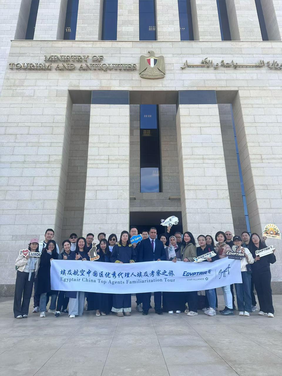 كما شاركت مصر للطيران في رعاية واحدة من أكبر الرحلات التعريفية للسوق السياحي المصري، حيث قامت برعاية ونقل 46 وكيلا سياحيا ومنظم رحلات صينيا، بالتعاون مع وزارة السياحة والأثار المصرية، والهيئة العامة للتنشيط السياحي، والمتحف المصري الكبير، وشملت الرحلة زيارة أبرز المعالم الأثرية والمناطق السياحية في مصر، بما يُتوقع أن يسهم بشكل كبير في زيادة حجم السياحة الصينية الوافدة إلى مصر، خاصة على متن رحلات مصر للطيران، الناقل الوطني لجمهورية مصر العربية.