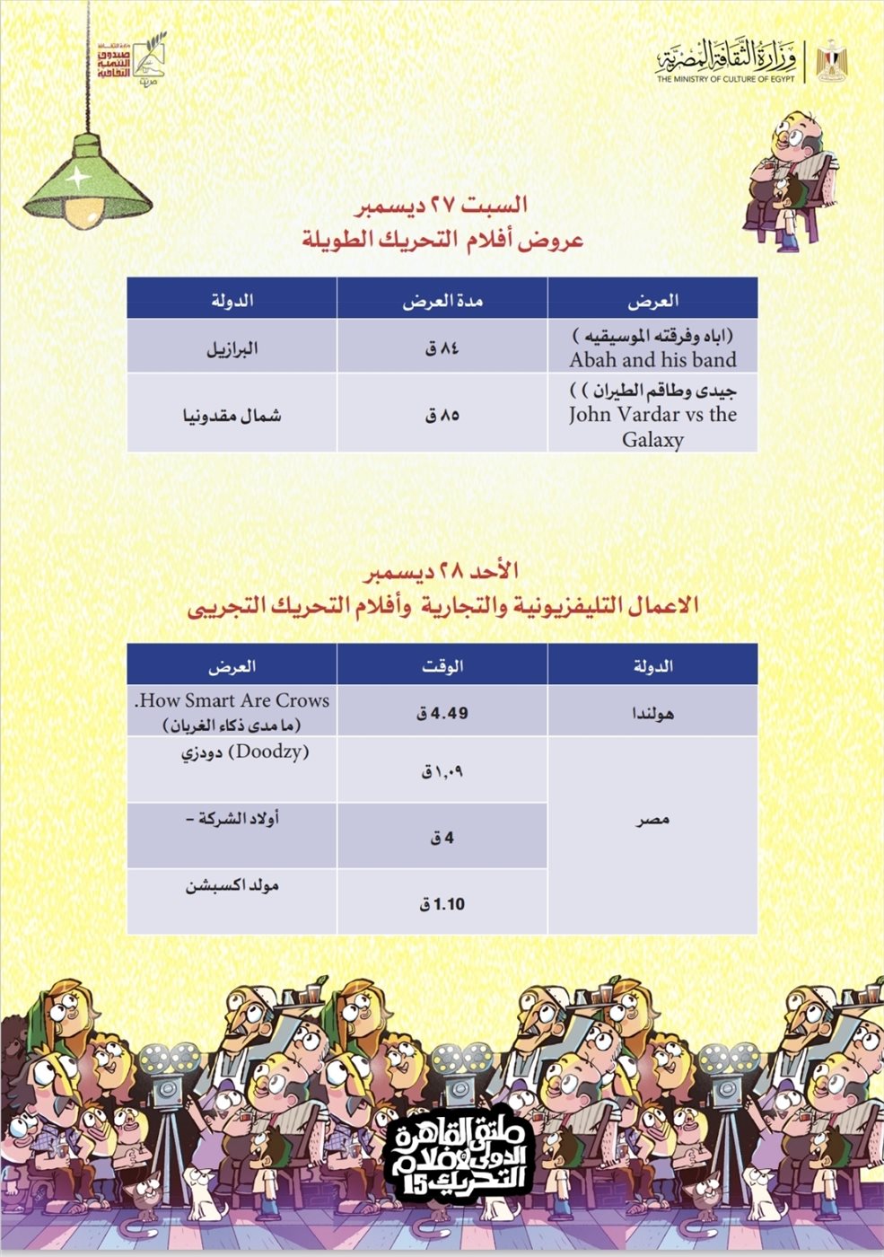 عروض الدورة الخامسة عشرة من ملتقى القاهرة الدولي للرسوم المتحركة