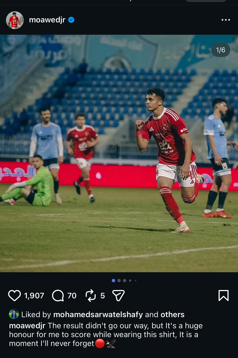 وقال عمر سيد معوض عبر حسابه على إنستجرام: "لم تكن النتيجة في صالحنا، لكن يشرفني كثيرا أن أسجل هدفا وأنا أرتدي هذا القميص، إنها لحظة لن أنساها أبدا".