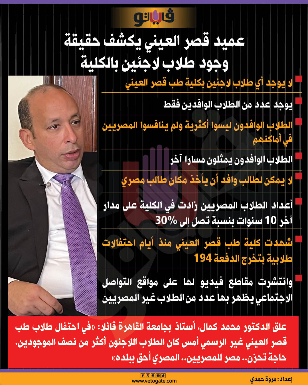 عميد قصر العيني يكشف حقيقة وجود طلاب لاجئين بالكلية (إنفوجراف)