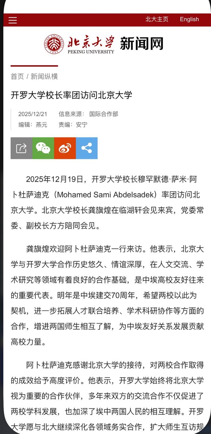 الصحف الصينية: زيارة رئيس جامعة القاهرة إلى بكين تعزز التعاون الأكاديمي والبحثي