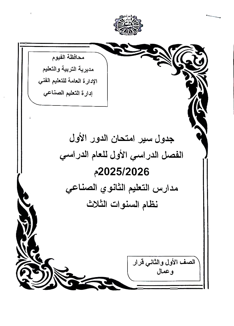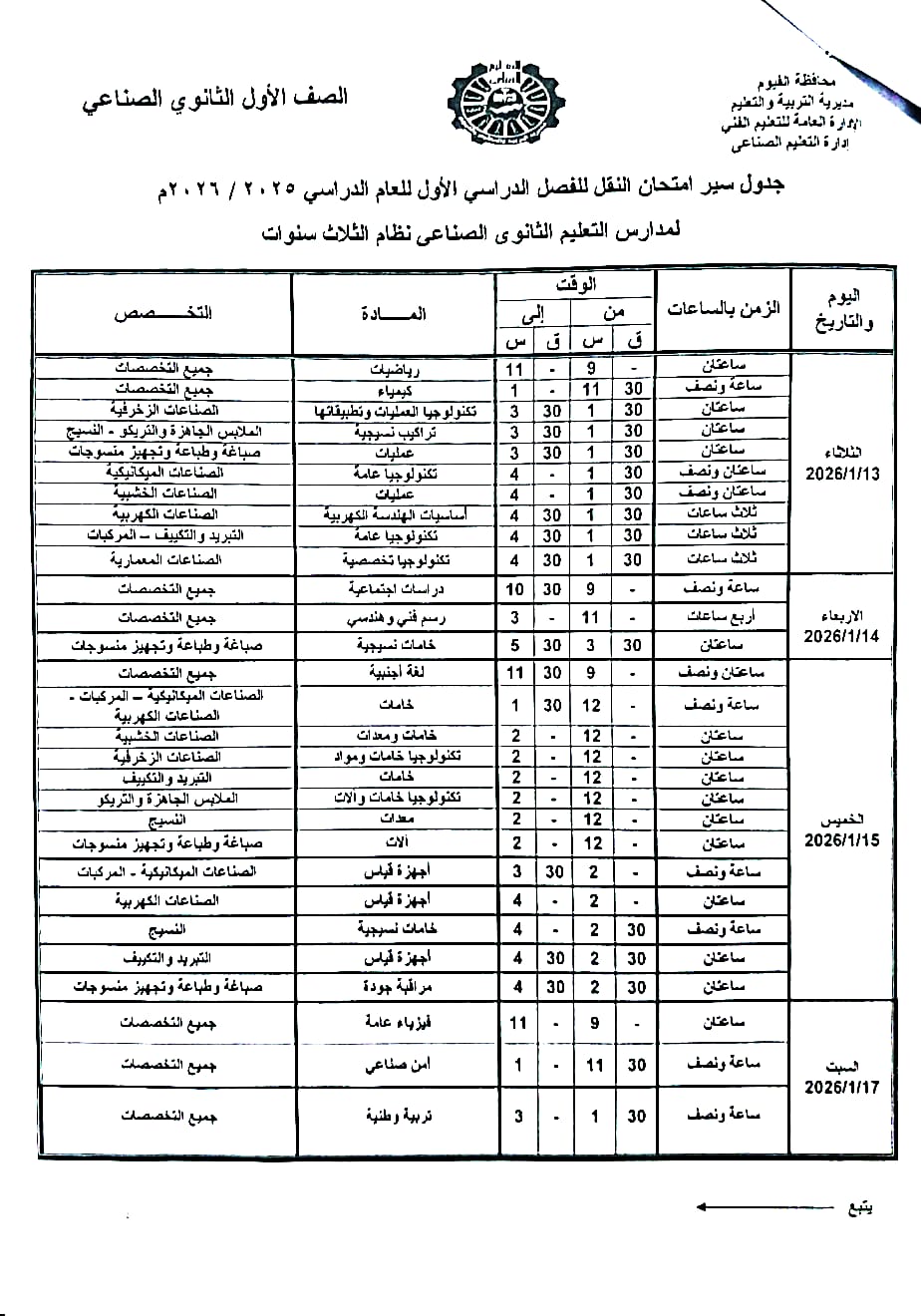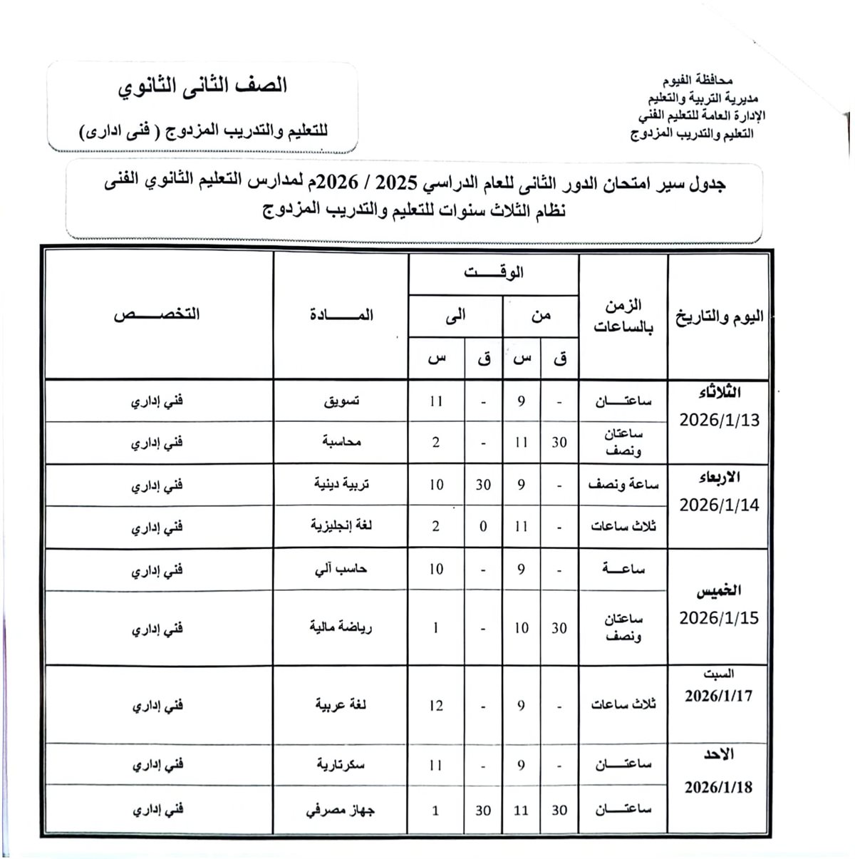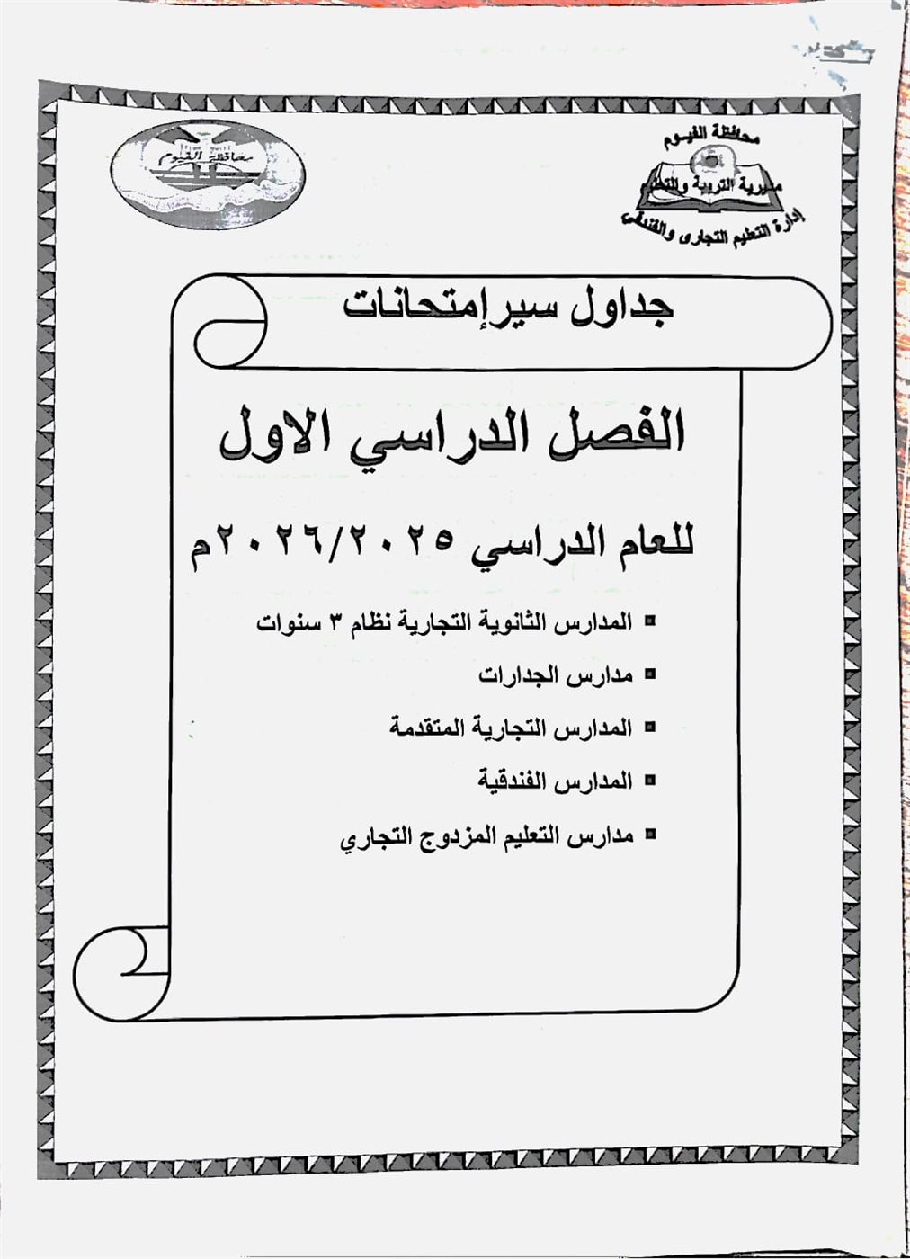 محافظ الفيوم يعتمد جدول امتحانات النقل لمدارس التعليم الفني