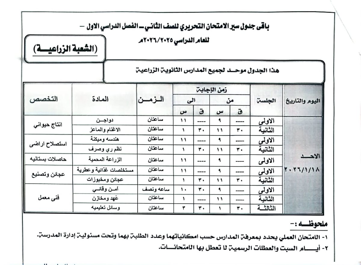 وتبدأ امتحانات المواد العملية اعتبارا من يوم السبت 27 ديسمبر بحسب عدد الطلاب والورش والمعامل بما مدرسة، ويتم امتحان المواد العملية علي مجموعات يومية مرتبة بحسب أرقام الجلوس.