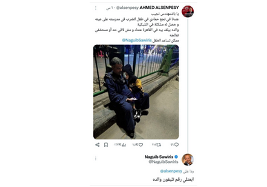 وسرعان ما لاقت المناشدة صدى واسعًا، حيث رد رجل الأعمال نجيب ساويرس على المنشور، مطالبًا بالحصول على رقم هاتف والد الطفل، في خطوة إنسانية تهدف إلى التدخل العاجل ومساعدة الأسرة في علاج الطفل وتخفيف معاناته.